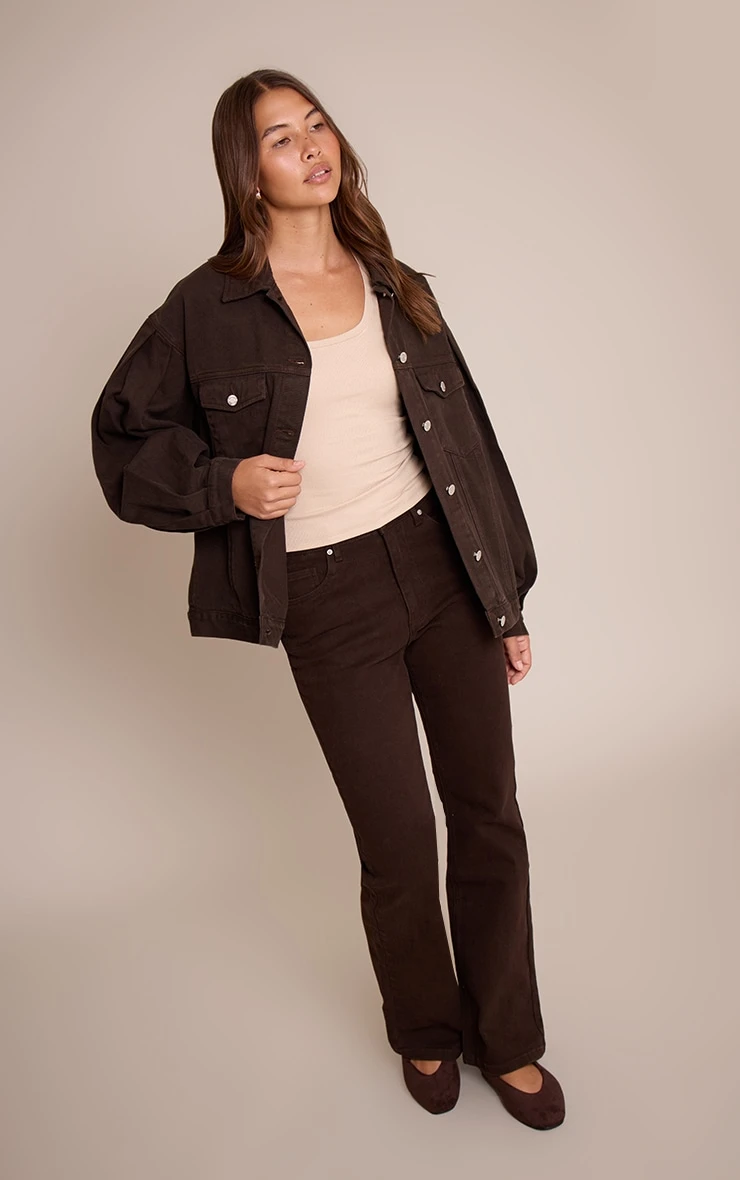 Discover your definitive denim statement in a rich, artful hue. These dark chocolate high waisted denim bootcut jeans present a sleek high-rise waist that subtly defines your profile, flowing into an effortlessly elongating bootcut hem. Complete with classic value and zip fastening, this essential piece serves as the perfect foundation for considered day dressing. Pair this versatile style with a crisp white shirt or an oversized ribbed sweater for an elevated day aesthetic, grounding your confident stride with sleek brown cowboy boots. Complete your thoughtful ensemble with a stack of gold bracelets for an undeniable knowing finish.