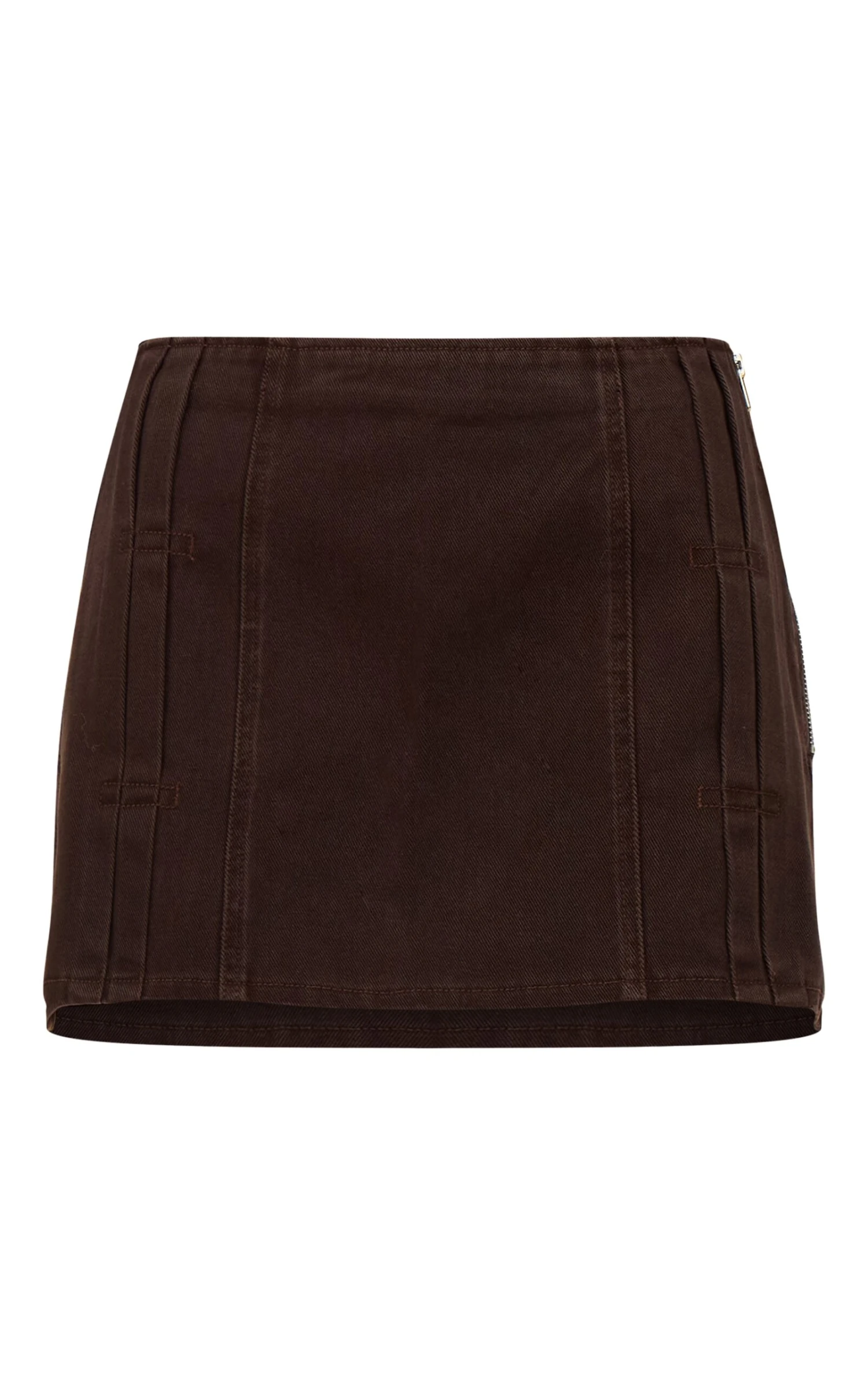 Exude charm in the dark chocolate pleat detail denim mini skirt. Made from a dark chocolate denim material, it features pleat detailing, a mini cut, and a flattering fit. Style with a matching hue jacket, slip on mules and a clutch bag for a fool proof finish.