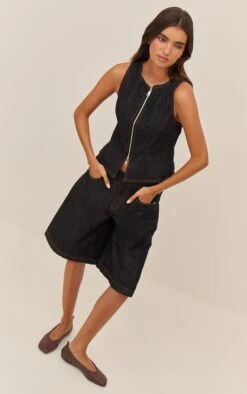 Add polish to your casual wardrobe with this dark indigo cinched waist peplum denim top. Featuring a tailored waist and flared peplum hem, style this piece with the matching shorts, chunky bangles, gold stud fastening earrings and strappy kitten heels for a flattering and feminine silhouette.