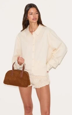 Stay effortlessly chic in this ecru oversized lightweight woven cuff shirt. Made from ecru lightweight woven material with oversized design and cuff detailing for a relaxed, sophisticated look. Style with a pair of shorts and a statement bag to complete the look.