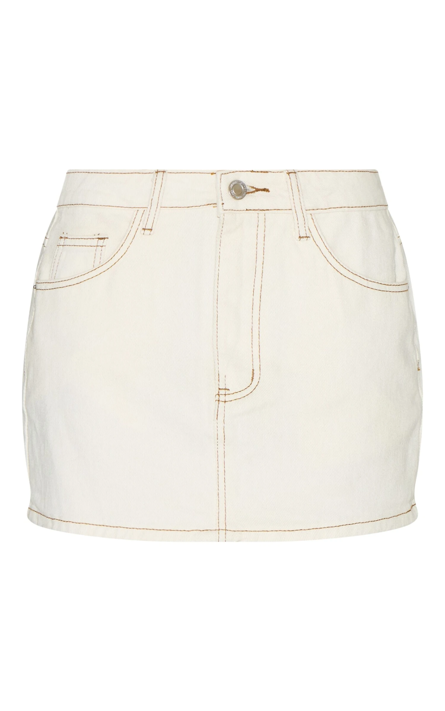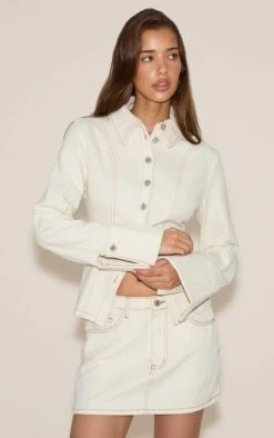Turn heads in this ecru rigid denim mini skirt. Brought to you in an ecru denim material with a flattering mini length. Team this mini skirt with a pair of flats and the matching jacket to elevate your outfit instantly.