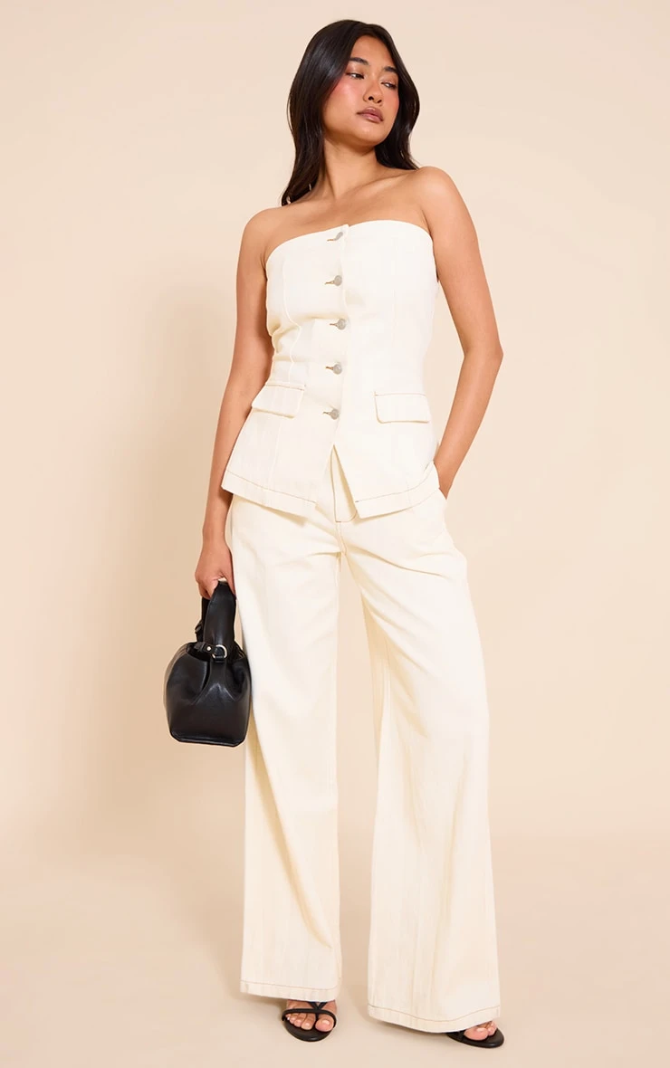Step into tailored comfort with this ecru tailored style wide leg jean, perfect for elevated everyday dressing. Brought to you in an ecru denim fabric with a tailored finish and wide-leg cut, they blend structure with ease. Style with a cropped shirt or bandeau top for clean, minimalist styling.