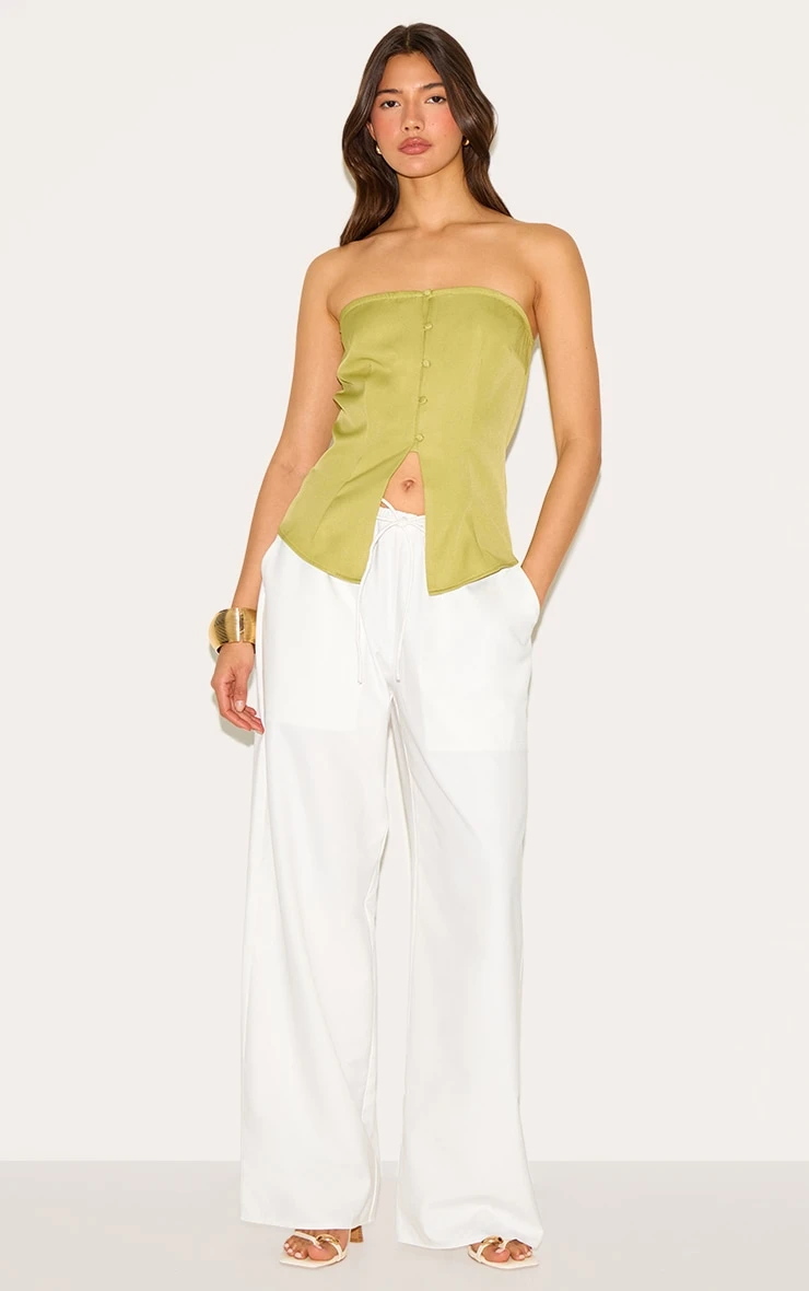 Make a statement in this green fitted bandeau value vest. Brought to you in a green material with a fitted bandeau design, what more could you want? With a value fastening, this vest is the perfect addition to your weekend wardrobe. Team with a mini skirt and your favorite accessories for a look like no other.