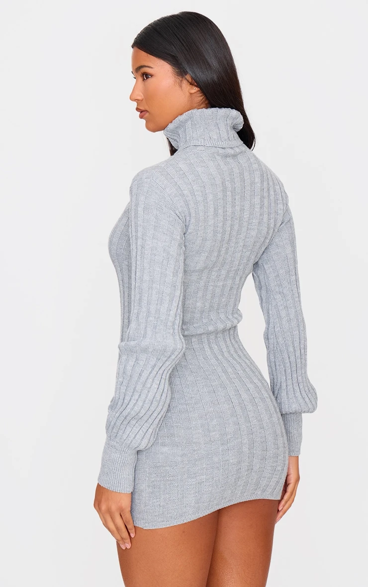 Invest in considered comfort with this grey knitted roll neck sweater dress. The ultimate minimalist statement piece, crafted from a soft knit to offer both warmth and a refined silhouette. The roll neck design lends itself to effortless layering; think a statement belt cinched at the waist to further define the shape. Consider pairing with knee-high leather boots from our accessories collection for a modern, directional look.