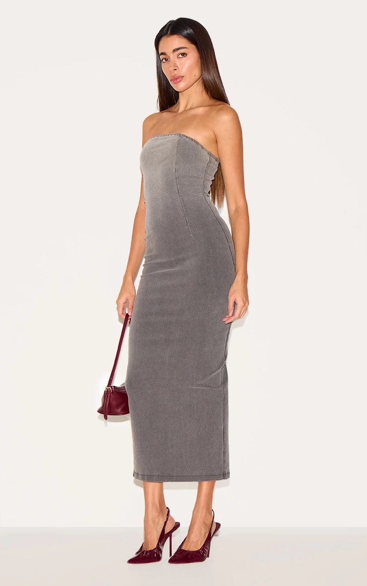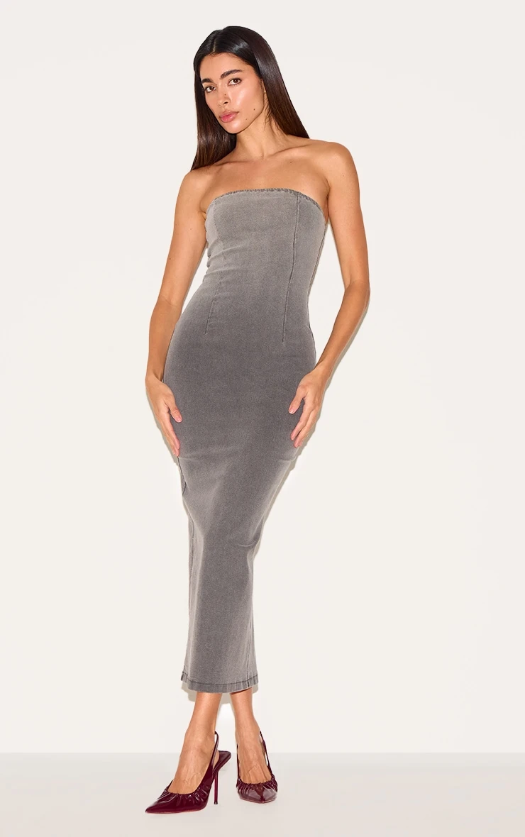 This season’s denim evolution arrives in the form of a grey ombré stretch midaxi. A masterclass in considered construction, the strapless silhouette accentuates the décolletage while the subtle ombré wash brings a contemporary edge to this classic fabric. Crafted for comfort and style, the stretch denim allows for ease of movement without compromising the streamlined form. Dial up the after-dark appeal with a sculptural cuff from our jewelry collection, or add a touch of daytime cool by throwing over an oversized shirt.