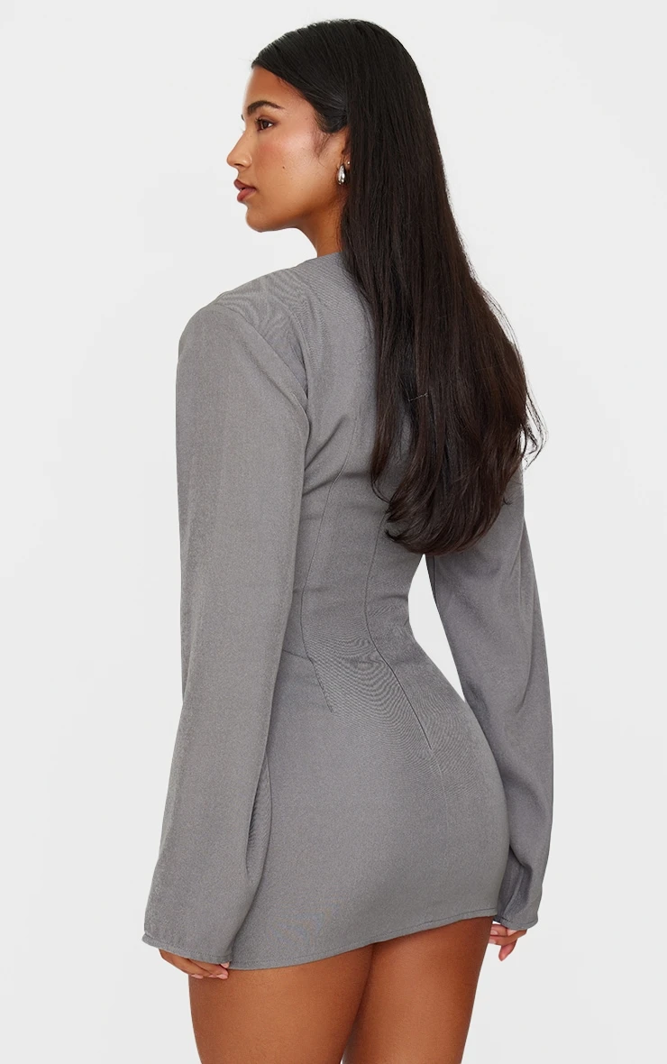 Consider this woven bodycon dress your shortcut to an elevated weekday look. Crafted in a versatile grey hue, the batwing sleeves introduce a touch of considered drama, balancing the streamlined silhouette. The woven texture adds depth, making it an ideal canvas for considered accessorising. Style yours with sculptural gold earrings for a curated after-dark ensemble.