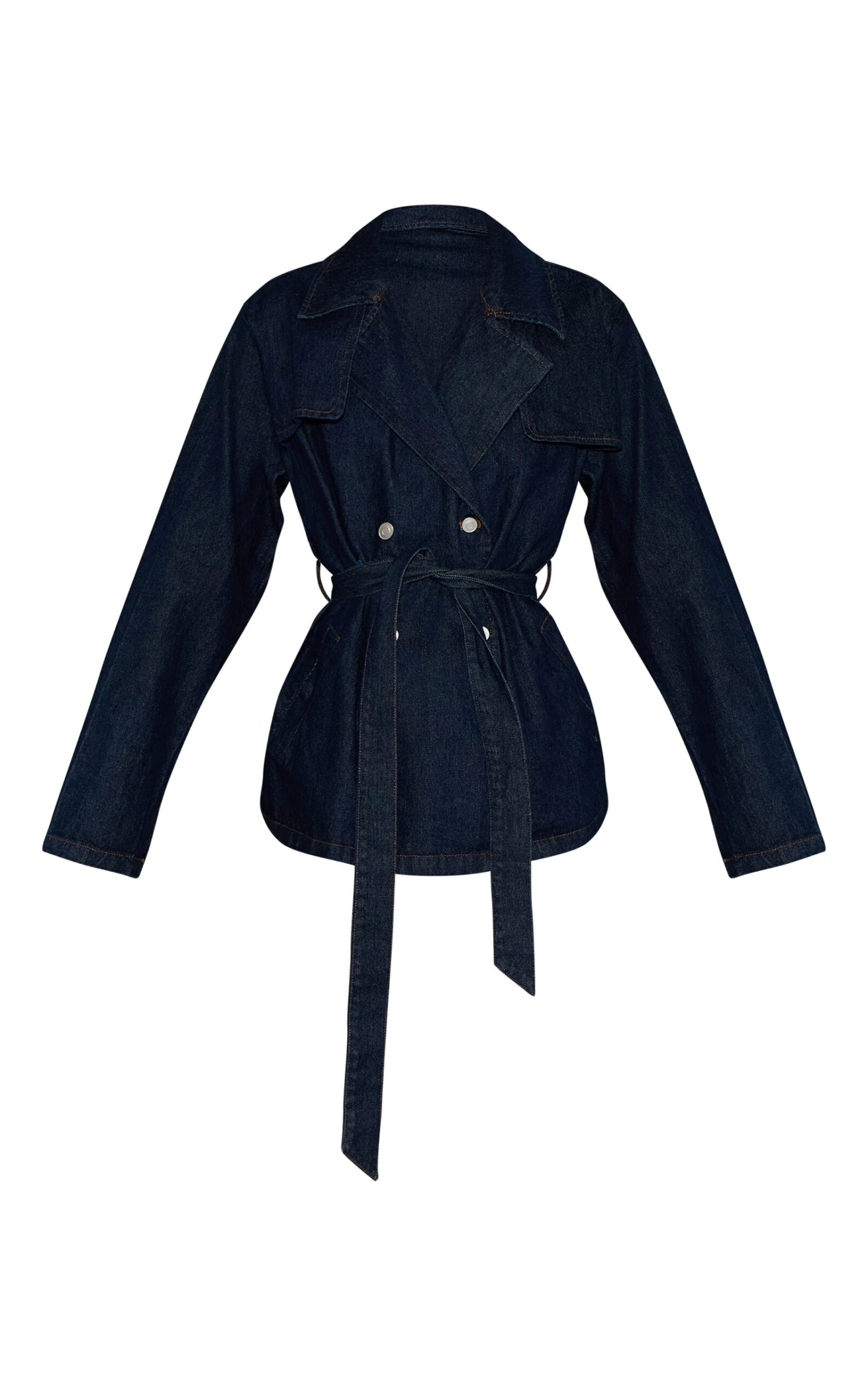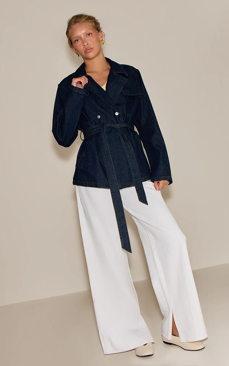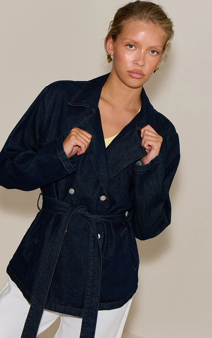 Bring edge to your outerwear with the indigo belted cropped denim trench. Made from an indigo denim material, it features a cropped length, belted waist, and trench-style design for bold style. Pair with your outfit of the day and kitten heels for a sophisticated touch.