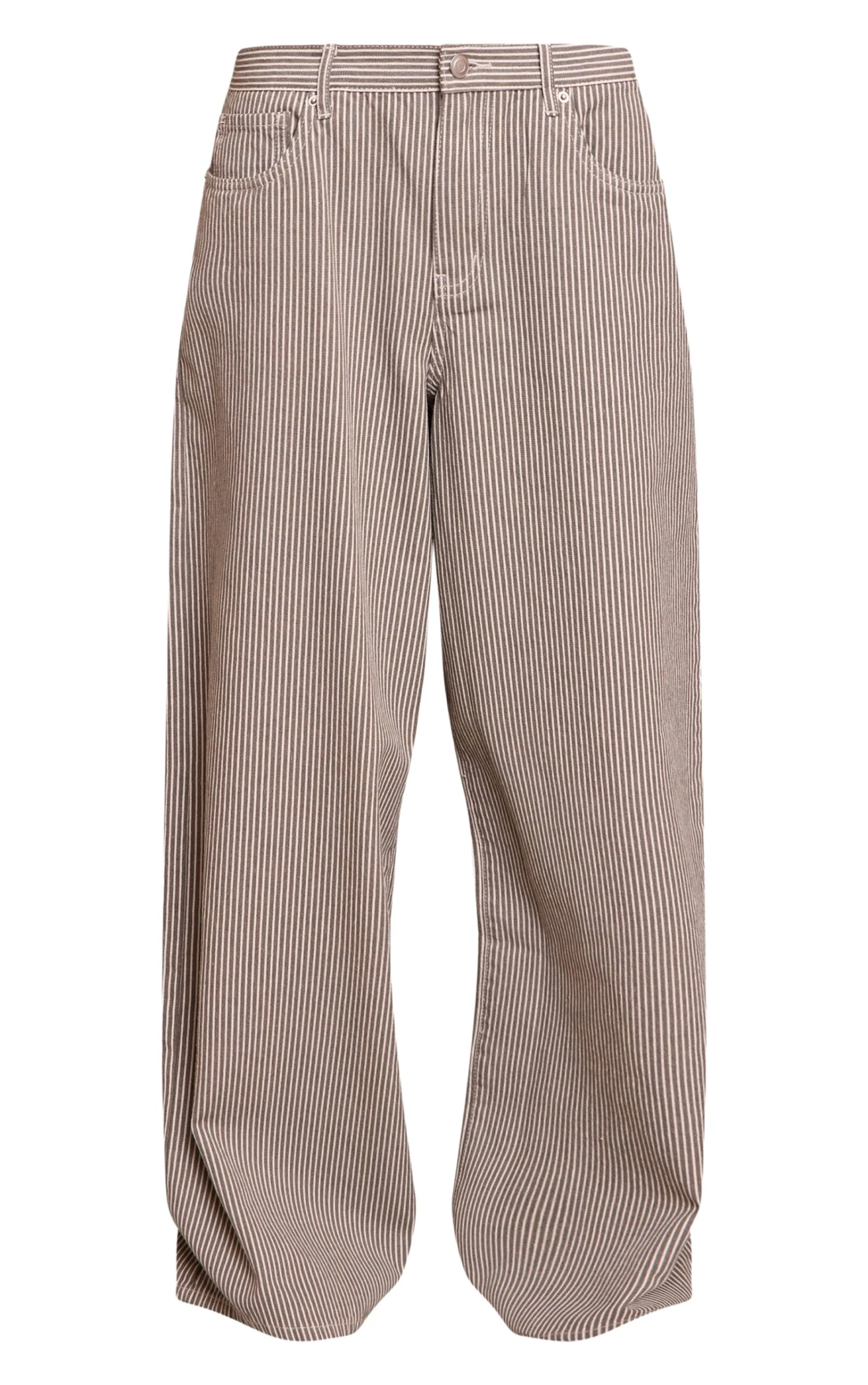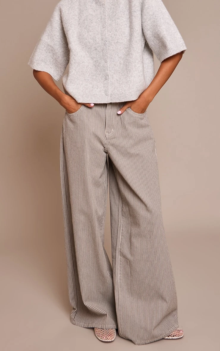 Update your denim game with the khaki pinstripe high waist denim jeans. Featuring a tailored pinstripe design with a flattering high waist and straight leg fit, they’re the perfect statement jean. Style with a crisp white shirt and heels for chic city dressing.