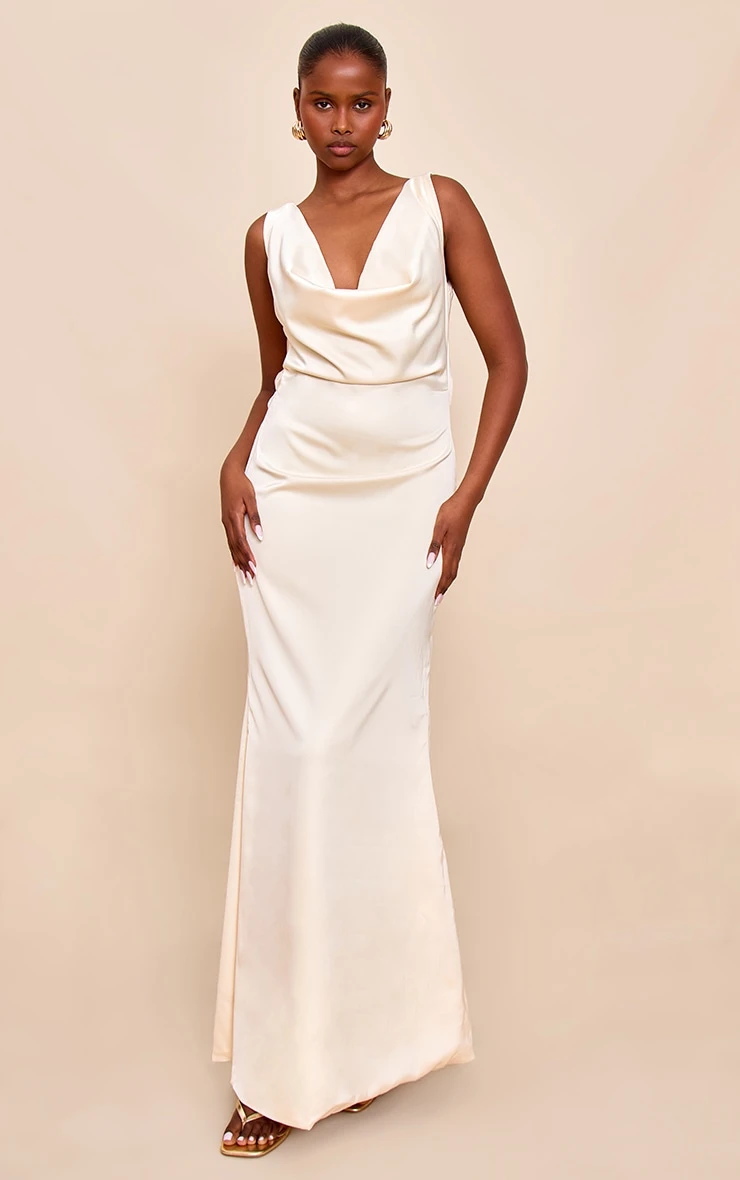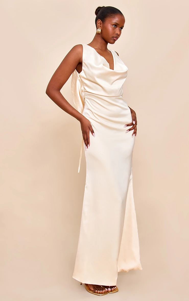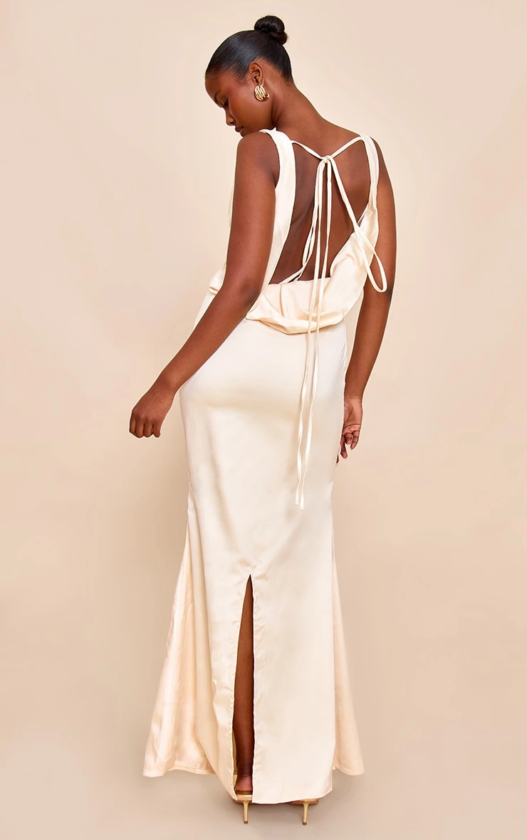 Embrace effortless chic with this lemon bridesmaid satin cowl neck maxi dress. Featuring a sleek cowl neckline with a low back, this dress has a tie fastening at the reverse and a sweeping maxi length fit. For a flawless seasonal finish, style this with strappy sandal heels and minmalistic gold jewelry.
