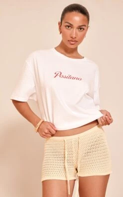 The lemon fine crochet knit drawstring shorts are playful and perfect for warm weather. With delicate crochet detailing and adjustable drawstring waist, they combine comfort and sweetness effortlessly. Style with an oversized tee and woven sandals for a beach-ready two piece set, or throw on over your bikini for poolside lounging with a pop of color.