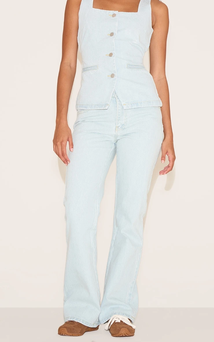 The light blue mid waist straight leg jeans are a versatile addition to your wardrobe, combining elevated design with easy styling potential. Brought to you in a light blue hue, a mid waist design and a straight leg fit. Team with a pair of ballet flats and a basic tank top.