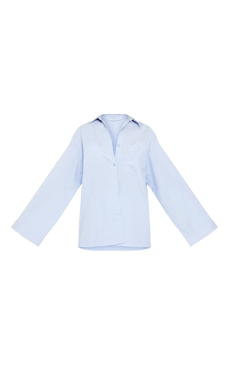 , this shirt is at the top of our wishlist right now. Featuring a light blue woven material with pinstripe detailing, balloon sleeves and an oversized fit. Pair this effortlessly with the matching shorts and platform sandals for a summery vibe.