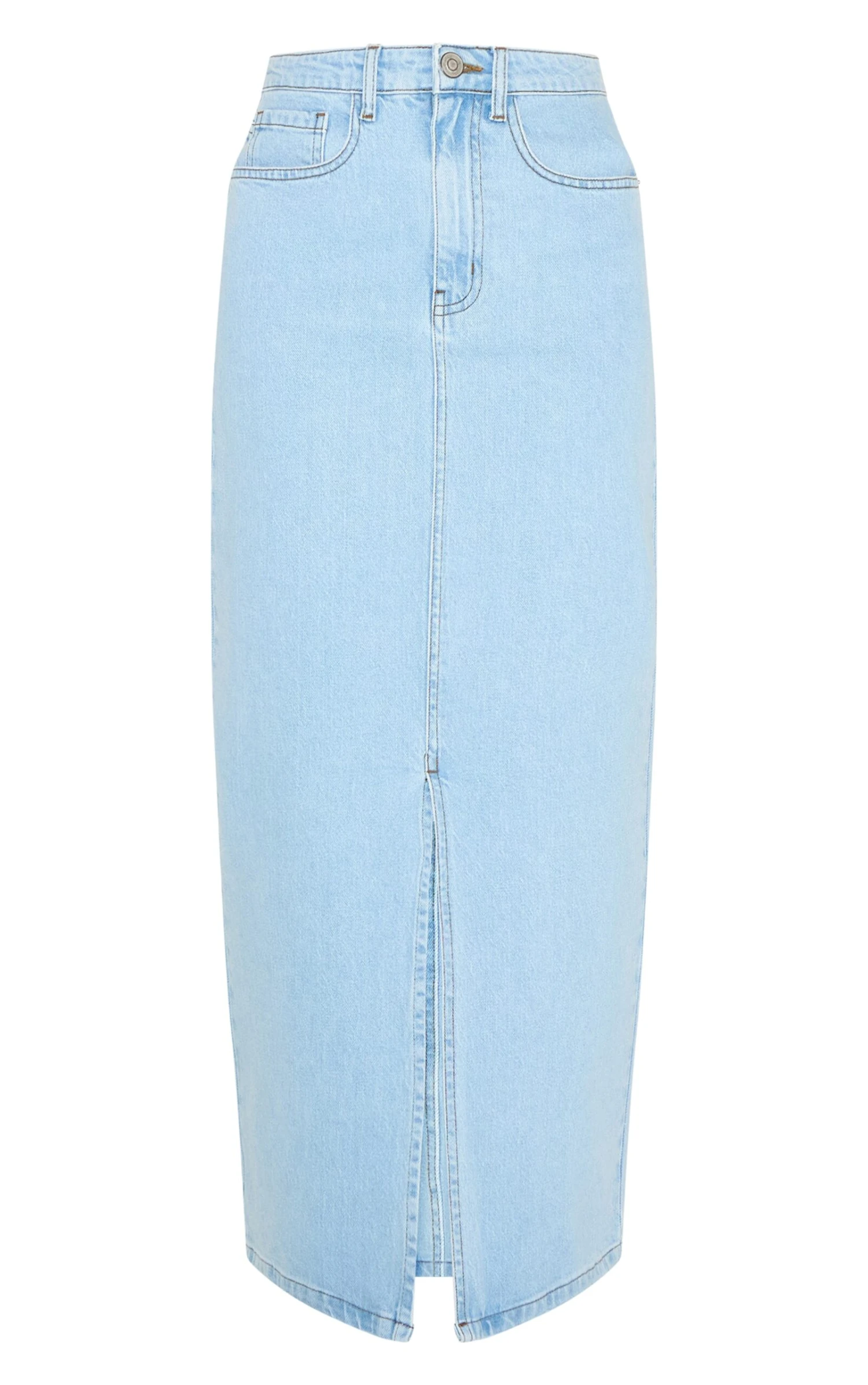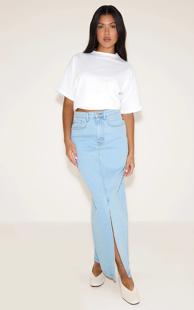 Redefine your everyday denim with a fresh twist. The light blue split denim maxi skirt offers a contemporary take on a wardrobe staple, featuring a flattering high-waisted fit that flows into a sleek, floor-skimming silhouette. Its artful central front split ensures ease of movement and adds an unexpected edge to the classic five-pocket design. Pair this versatile piece with an oversized sweater and chunky sneakers for a confident daytime vibe, or elevate it with a sophisticated crop top and strappy heels for an effortless evening ensemble that truly makes an impact.