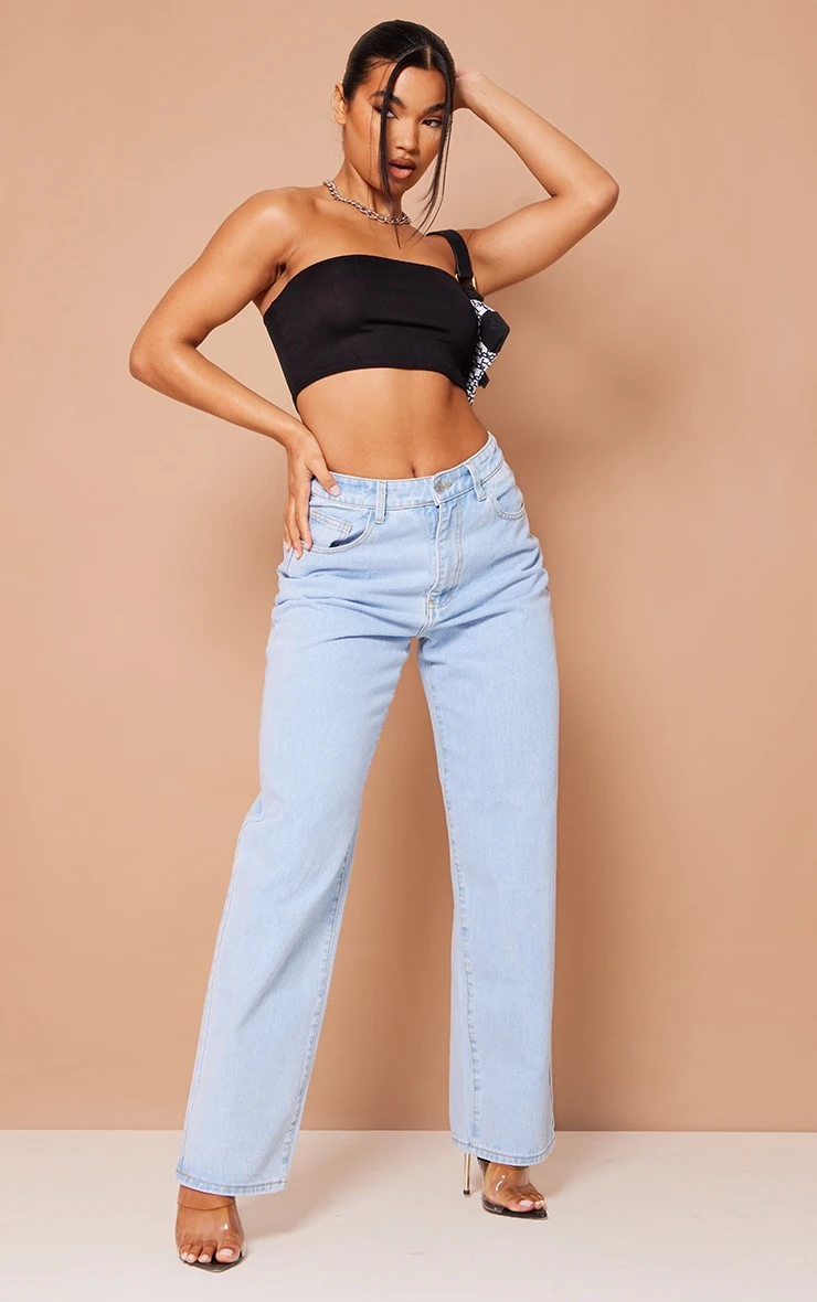Deconstruct the denim status quo with this reimagined classic. Boyfriend jeans, rendered in a light blue wash, receive an avant-garde update thanks to a dipped back waistband, subtly disrupting the traditional silhouette. The relaxed fit offers nonchalant cool, perfect for anchoring more refined pieces. Style yours with a sharply tailored blazer and pointed-toe boots for an elevated take, or ground the look with a simple ribbed knit and our oversized tote bag.