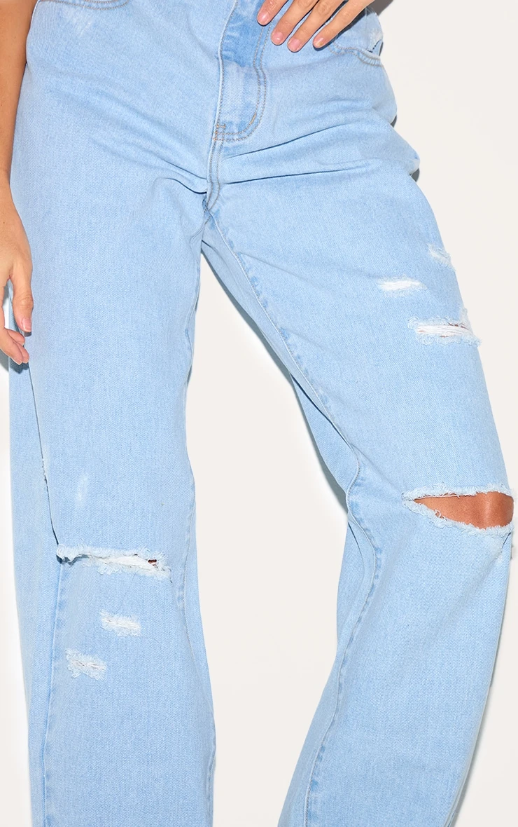No outfit of the day is complete without these light blue wash distressed style boyfriend jeans. Brought to you in a light blue wash material with a distressed style, what more could you want? Team these jeans with your fave accessories and a basic tee to finish off the look we are loving right now.