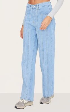 Elevate your denim repertoire with these light blue wash, straight leg jeans. The considered seam detailing offers a subtle point of difference, refreshing a timeless silhouette. Cut from durable denim, these jeans are designed for longevity and effortless styling. The light blue wash lends itself to versatile pairings; try them with a sharp, minimalist knit and barely-there heels for a refined daytime aesthetic. Alternatively, amplify the look with a bodysuit from our tops range and a statement belt from our accessories section for a night out.