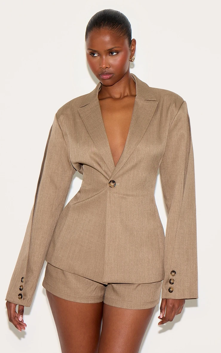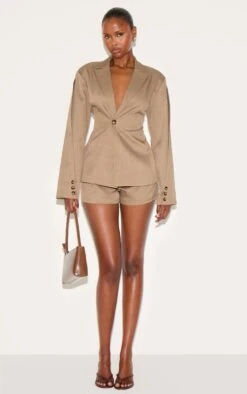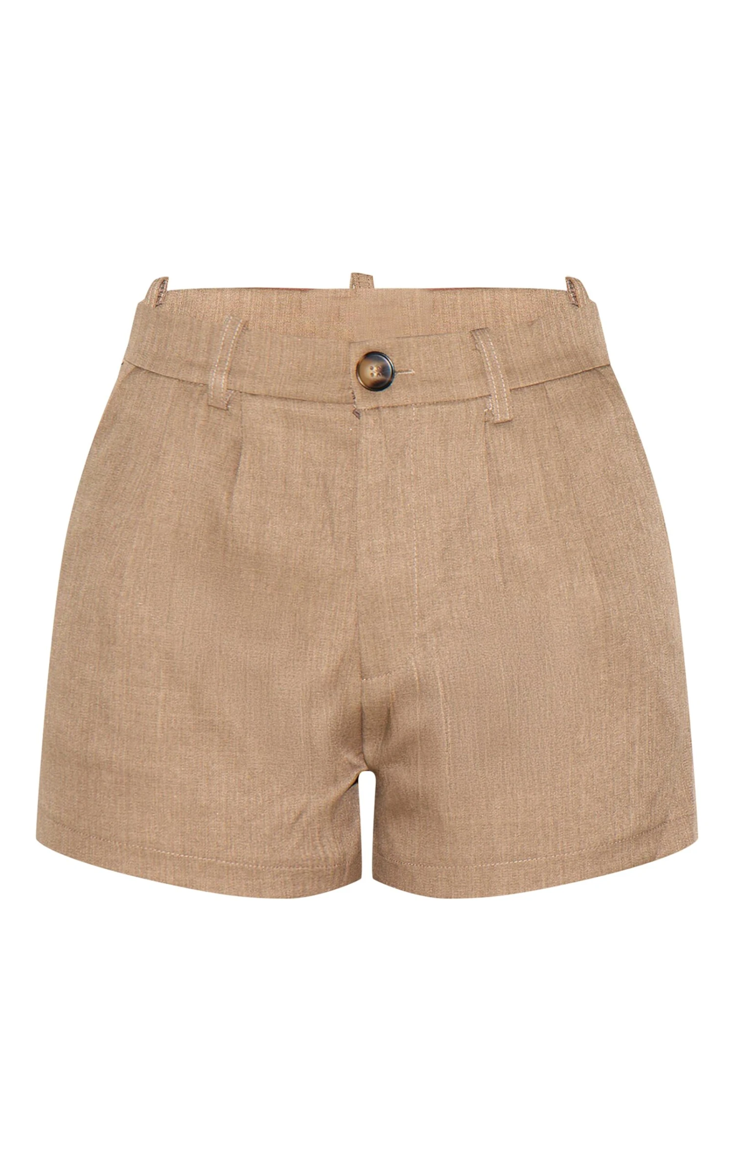Presented to you in woven light brown material, these shorts feature belt loops, subtle vertical pleat stitching and a value fastening.