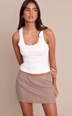 Introducing the light brown thick brushed rib mini skirt. Brought to you in light brown material, this skirt has a ribbed finish and a mini length fit. Pair it with a complementing top and your favorite slip on mule heels for effortless everyday wear.