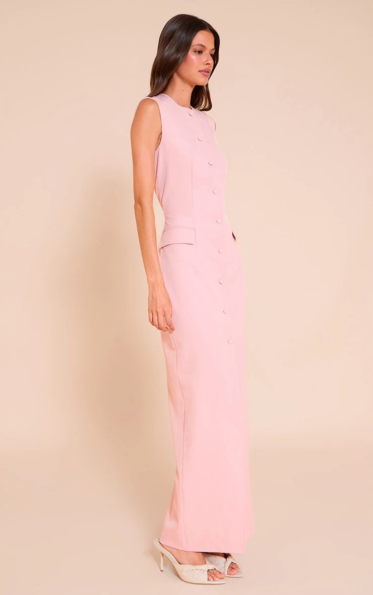 Channel soft femininity in the light pink woven value maxi dress, the perfect addition to your occasionwear rotation. Crafted from a lightweight woven fabric, this dress features delicate value detailing and a relaxed yet elegant silhouette. The full-length design and subtle hue give it timeless appeal, ideal for both garden parties and casual soirées. Pair with nude heels and a tonal clutch for a graceful finish.