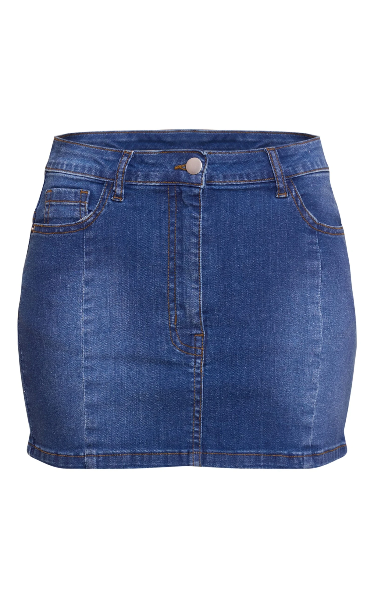 Effortless style starts here. The mid blue wash stretch denim mini skirt offers a knowing foundation for day-to-day looks, featuring a classic five-pocket design and a sleek value and zip fastening. Its versatile mini cut in a rich mid blue wash makes it an indispensable piece for your denim rotation. Team this essential with a crisp white racerback Vest and sneakers for an unforced, confident vibe, or elevate your aesthetic with an oversized knit sweater and ankle boots for a cool-weather edge.