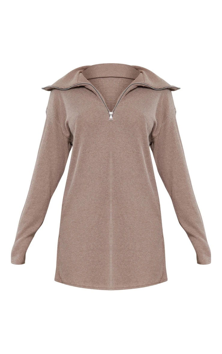 Consider this your new-season style blueprint. This mocha rib-knit sweater dress offers a considered take on effortless off-duty dressing. The high neckline and half-zip detail bring a contemporary edge to the oversized silhouette. Style yours with chunky-sole boots and a chain-detail shoulder bag from our accessories collection for a confident weekend mood.