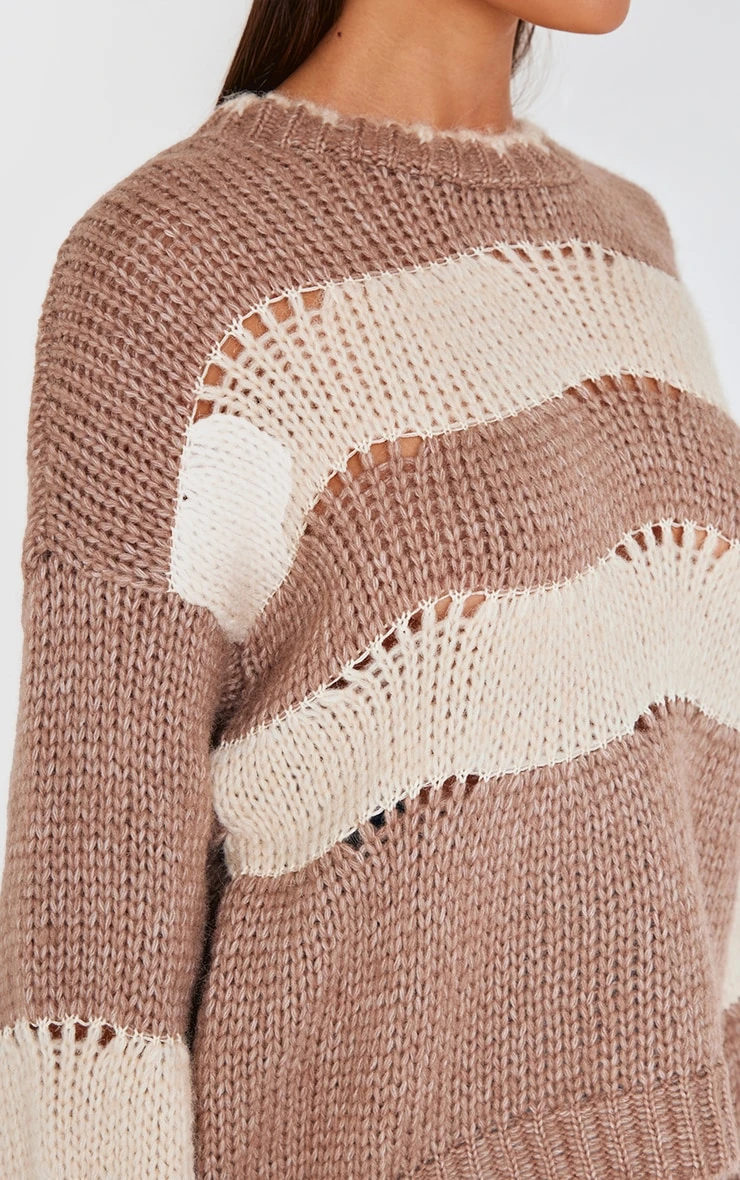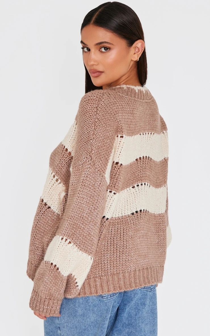 Consider this your new-season style blueprint: an artfully distressed, mocha stripe knit that subtly nods to heritage while remaining firmly rooted in the now. The chunky texture provides tactile interest and enduring warmth, making it a foundational piece for transitional wardrobes. Consider the stripe a neutral; this knit layers effortlessly over tailored pants for a considered approach to off-duty dressing.