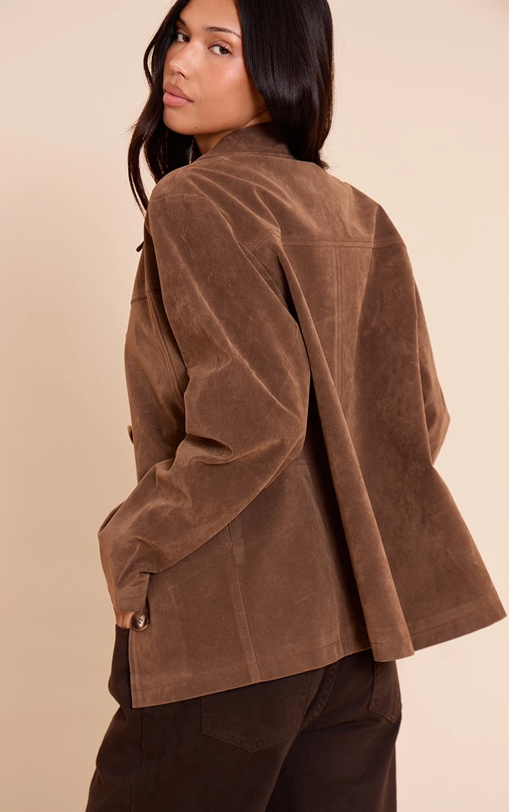 Step into sophisticated styling with the mocha suede value detail jacket. Made from a rich mocha suede-effect fabric, it showcases sleek value detailing and a clean, streamlined shape that works from desk to dinner. Team with a satin skirt or wide leg pants and pointed heels for a refined statement.