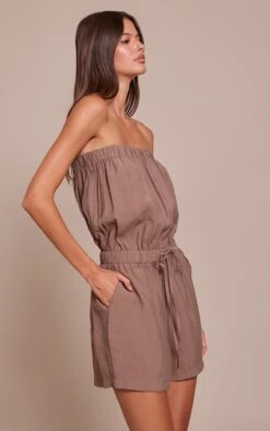 Step into summer with the mushroom woven textured bandeau romper. Made from a lightweight mushroom textured fabric, it features a bandeau neckline and relaxed silhouette for an easy, breezy fit. Style with flat sandals and a crossbody bag for effortless warm-weather dressing.