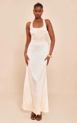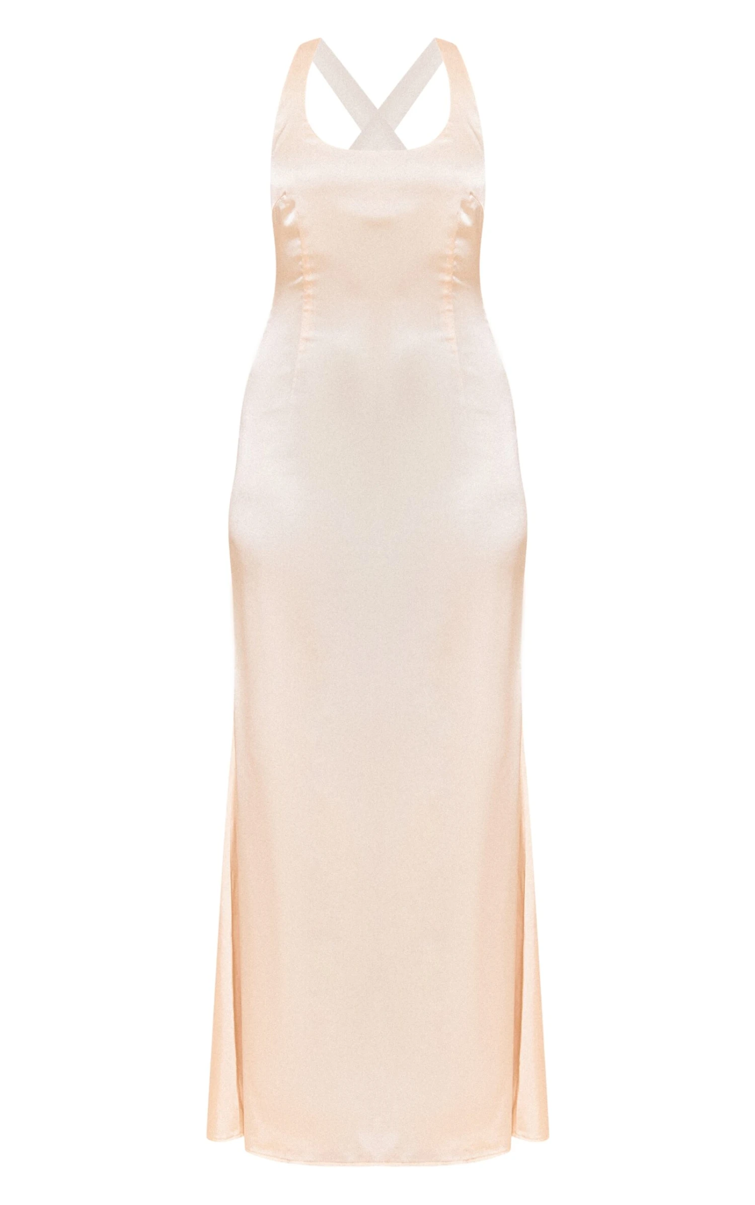 Keep it sleek with the natural satin cross back midaxi dress. Made from a natural satin fabric, this dress features a chic cross back design and a flattering midaxi length perfect for elegant evenings or special occasions. Team this midaxi dress with heels and accessories of your choice to feel confident this season and beyond.