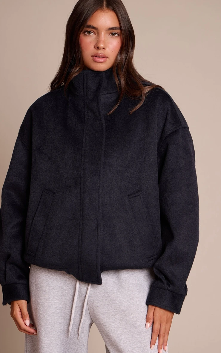 Modern outerwear finds its ultimate expression with the navy funnel neck bomber jacket, a piece designed for discerning daywear. Its distinctive funnel neck and relaxed bomber silhouette offer a contemporary profile, while a concealed front fastening maintains a streamlined finish. Practical patch pockets and a neat ribbed hem provide both utility and a touch of refined structure. For an elevated day look, layer this essential over a crisp white shirt and wide-leg pants, finishing your ensemble with chic ankle boots and a minimalist black shoulder bag for an undeniably composed aesthetic.