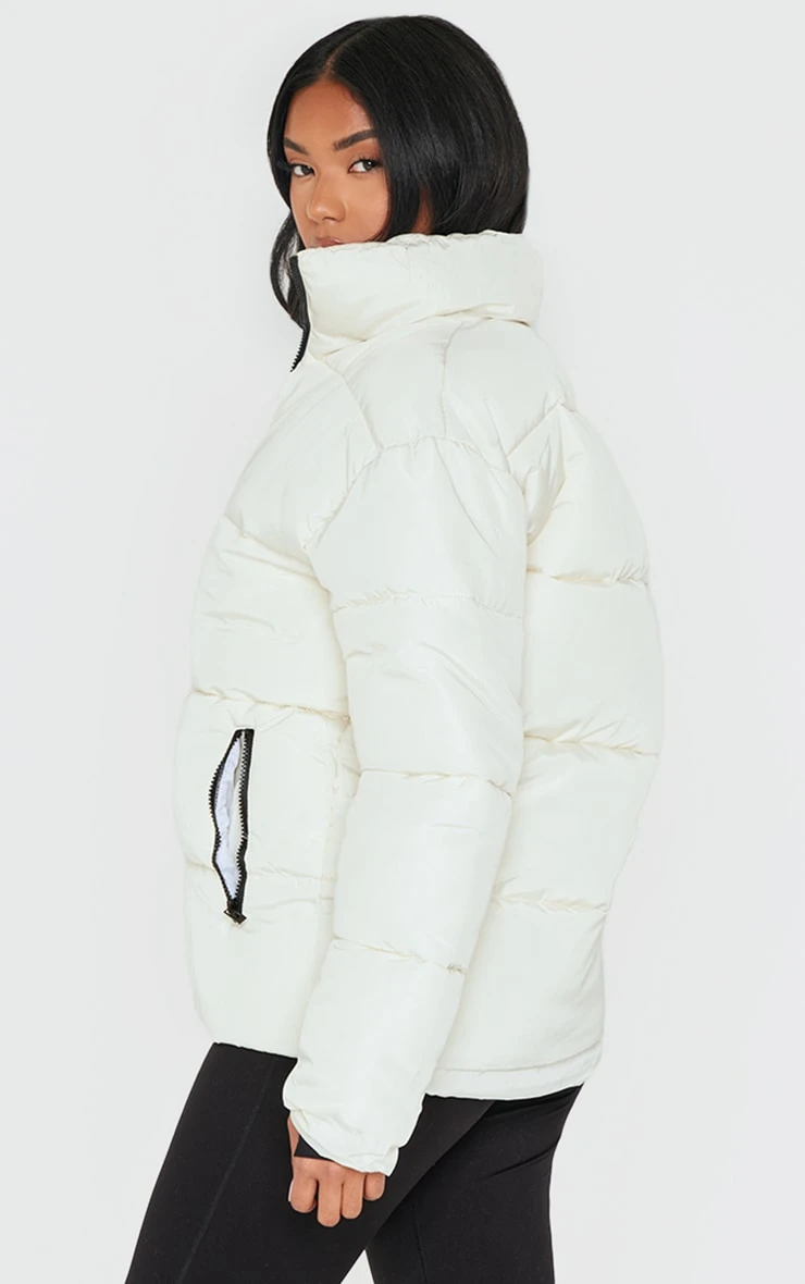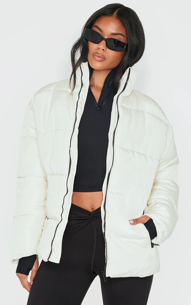 Embrace cold-weather dressing with a renewed sense of purpose. This off-white panelled puffer coat offers a contemporary take on a winter essential, designed with a high neck for maximum protection against the elements. The panelled construction adds a subtle architectural element to the clean silhouette, while the off-white hue provides a versatile foundation for building your seasonal looks. Consider styling yours with tailored pants from our collection for a sharp, city-ready ensemble that balances comfort and considered design.