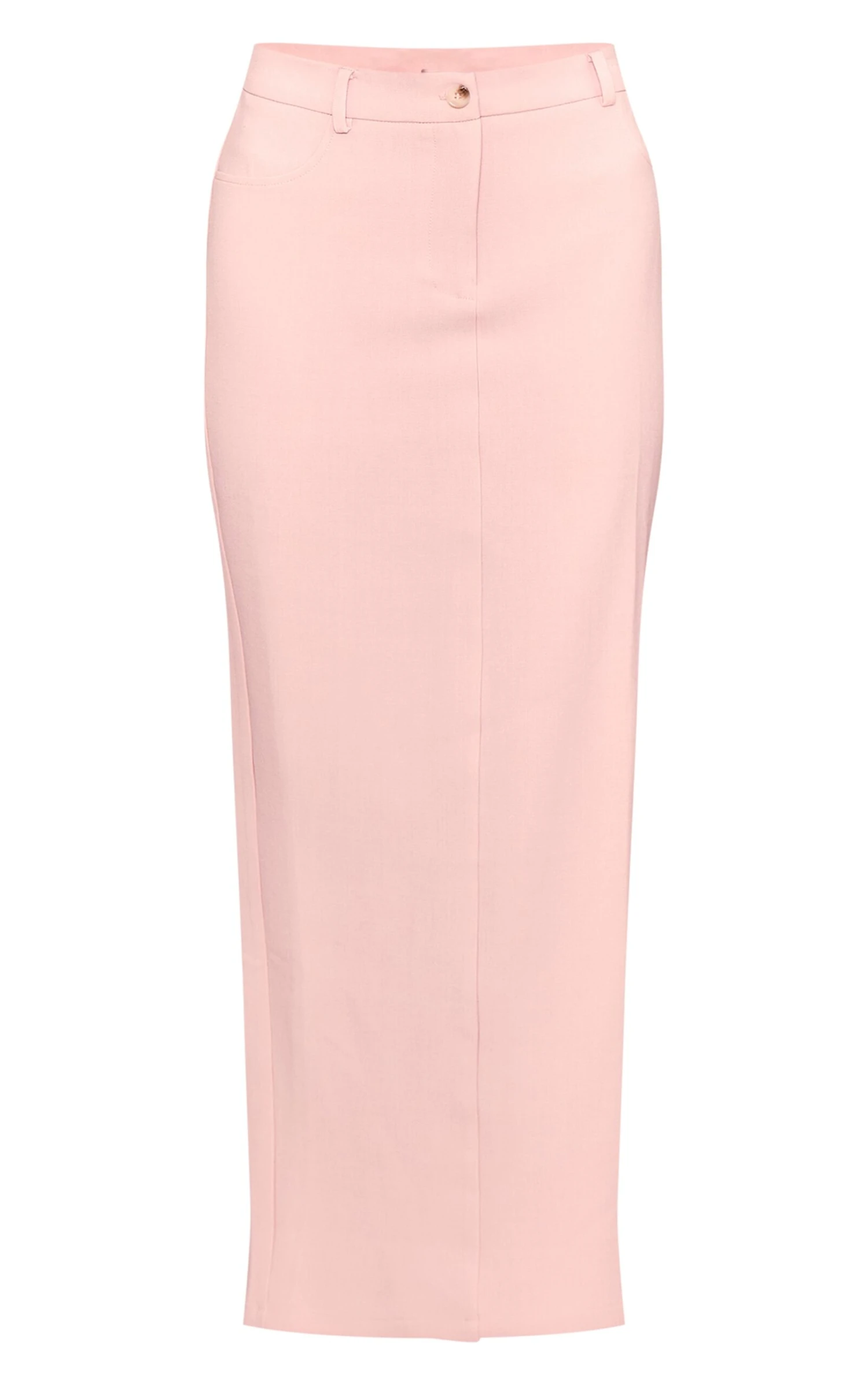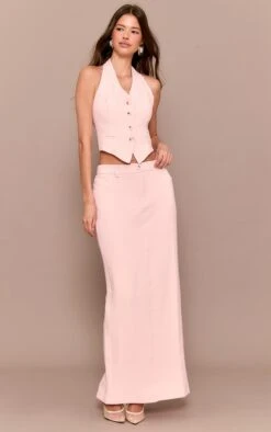 Create a chic and refined look with the pale rose tailored woven maxi skirt. Crafted from pale rose tailored woven material, it has a high waist and a full-length fit. Pair it with the matching vest for a sophisticated, coordinated outfit.