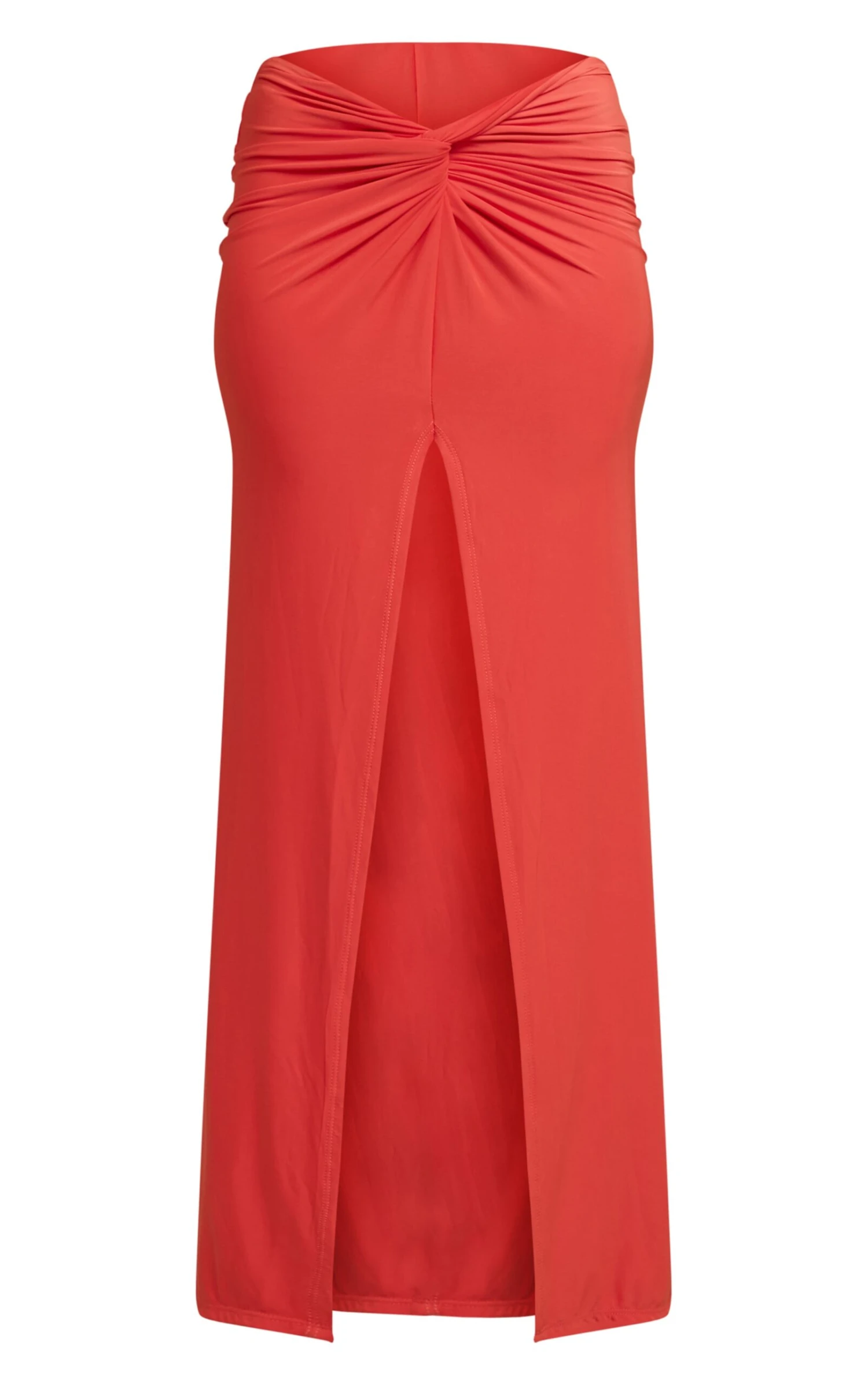Turn heads for all the right reasons in this peach slinky knot detail maxi skirt. Brought to you in a peach hue with a slinky material, a knot detail and a statement maxi length. Team this maxi skirt with a pair of mule heels and a tank top to complete the look.
