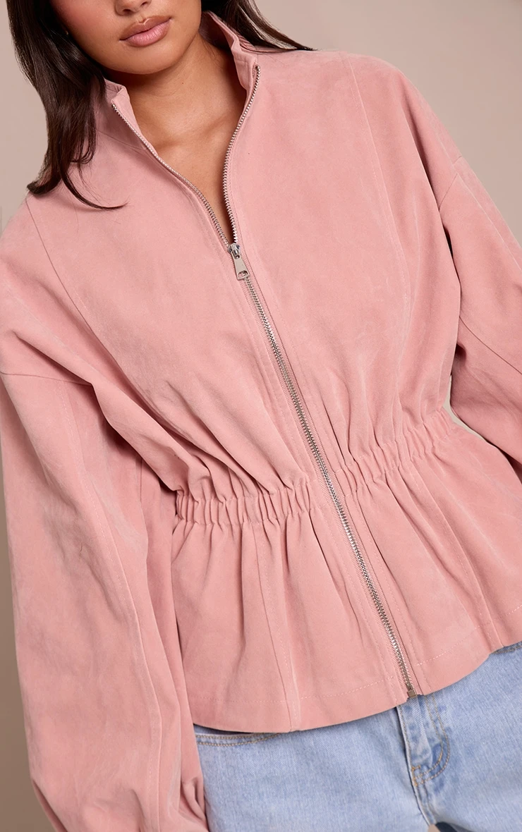 Refresh your outerwear with the pink cinched waist suede jacket. Designed in a soft faux suede, it features a cinched waist and tailored fit for a flattering silhouette. Style over a simple tee and a pair of jeans and gold accessories for a chic casual look.