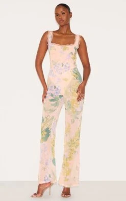 Brought to you in pink hue floral chiffon material with corset detailing, flared pants and a scalloped hem neckline. Style this pink floral printed chiffon corset detail flared jumpsuit with your favorite neutral heels and delicate gold earrings for a look that’s perfect for any occasion.