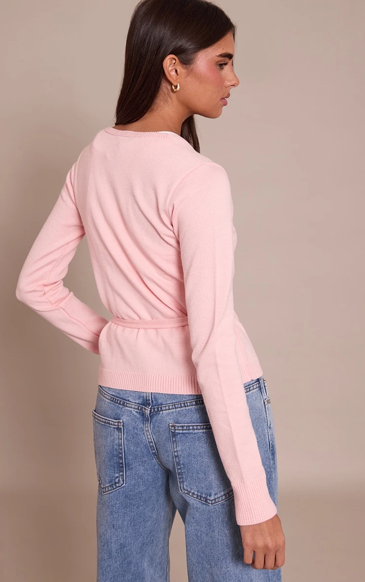 The pink pilates wrap knitted cardigan channels off-duty elegance with its wrap-front silhouette and soft pastel hue. Lightweight yet cozy, it’s perfect for layering post-workout or on relaxed days. Style with leggings and ballet flats for an easy athleisure look, or dress it up with tailored pants and gold hoops.