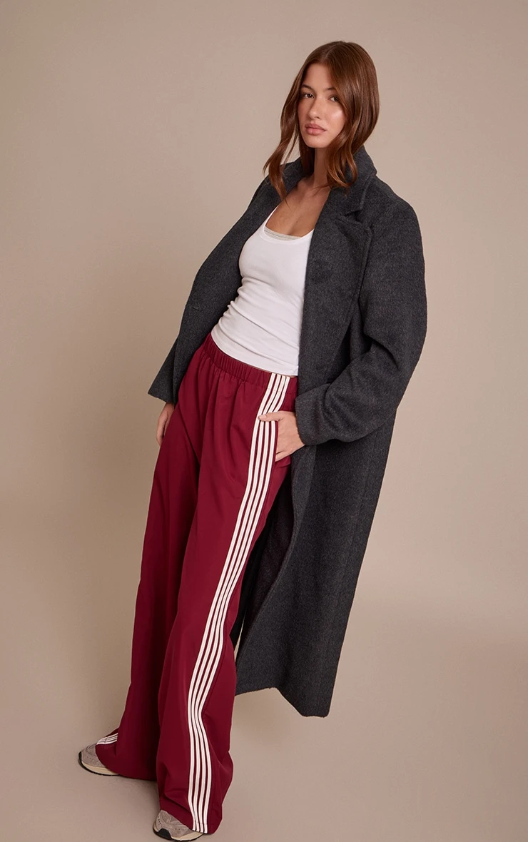 Keep your off-duty look on point with the plum shell side stripe detail track pants. Made from lightweight plum shell fabric with contrast side stripe detailing, these pants feature a relaxed fit and elasticated waistband. Style with a cropped hoodie or a trench coat and sneakers for street-style ease.