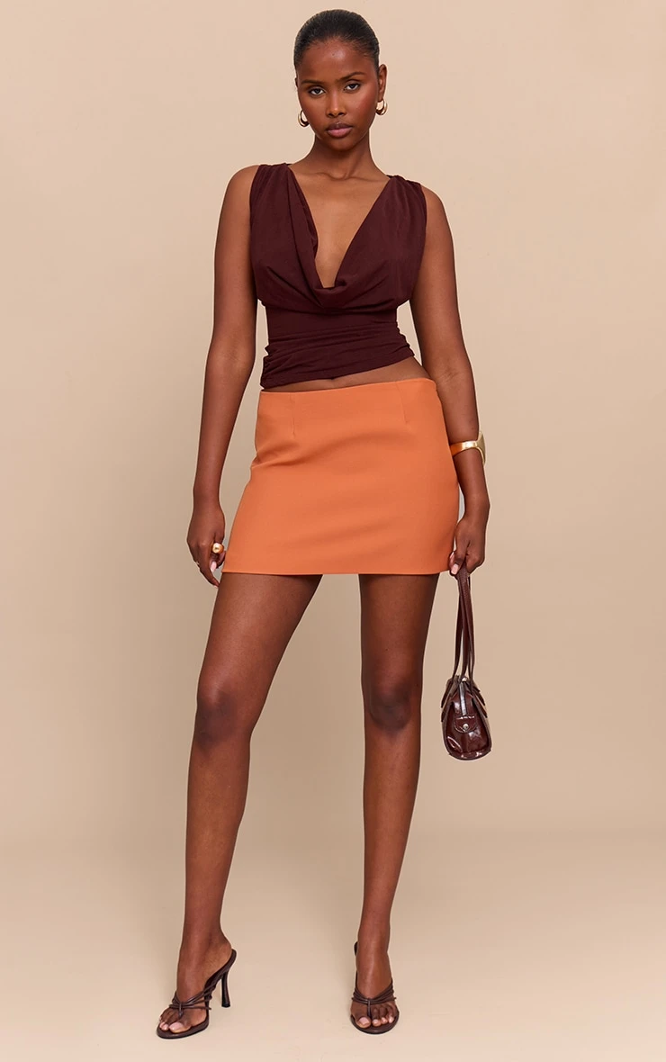 For those who dress with intention, meet this rust woven a-line mini skirt. Cut from a classic A-line silhouette, this skirt is made with rust hue fabric and features a woven finish. Simply style with a neutral top, your go-to strappy stilettos and a pair of gold hoop earrings.