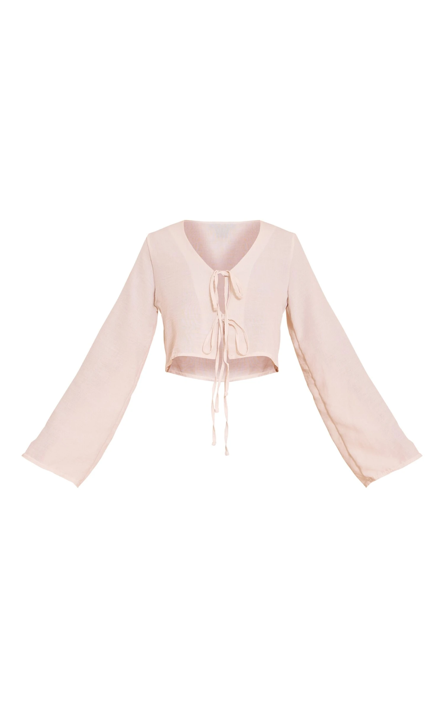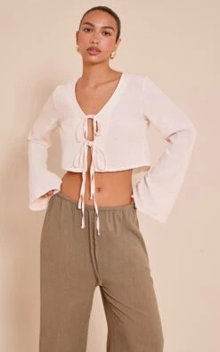 Refine your wardrobe with this taupe textured tie front detail blouse. Crafted from a sand hue material with a softly textured fabric, this blouse is elevated with a tie-front and relaxed fit. Pair with high-waisted pants and layered jewelry for everyday sophistication.