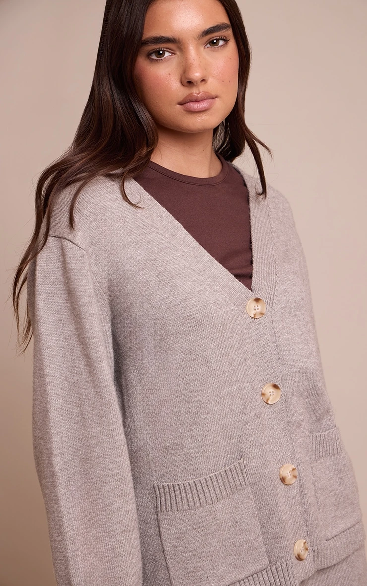 The soft grey turn back cuff cardigan offers timeless comfort and style. With a relaxed fit and turn-back cuff detail, it’s ideal for layering over casual or workwear outfits. Pair with tailored pants or jeans for a polished finish.