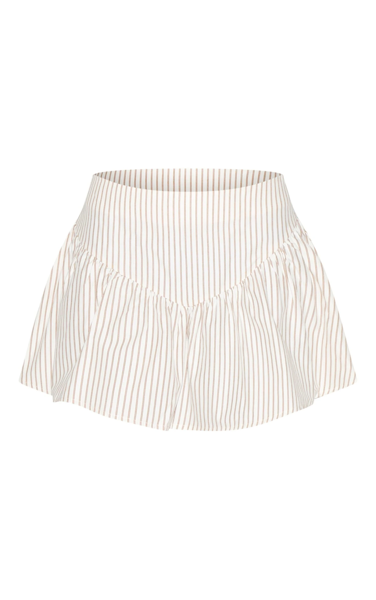 Add a luxe touch to your look with this stone contrast pinstripe drop waist mini skirt. Woven with care from delicately striped stone material, this skirt features a flattering dropped waist and a mini length fit. For effortless elegance, team it with a neutral Vest top, chunky gold jewelry and your favorite flat sandals.