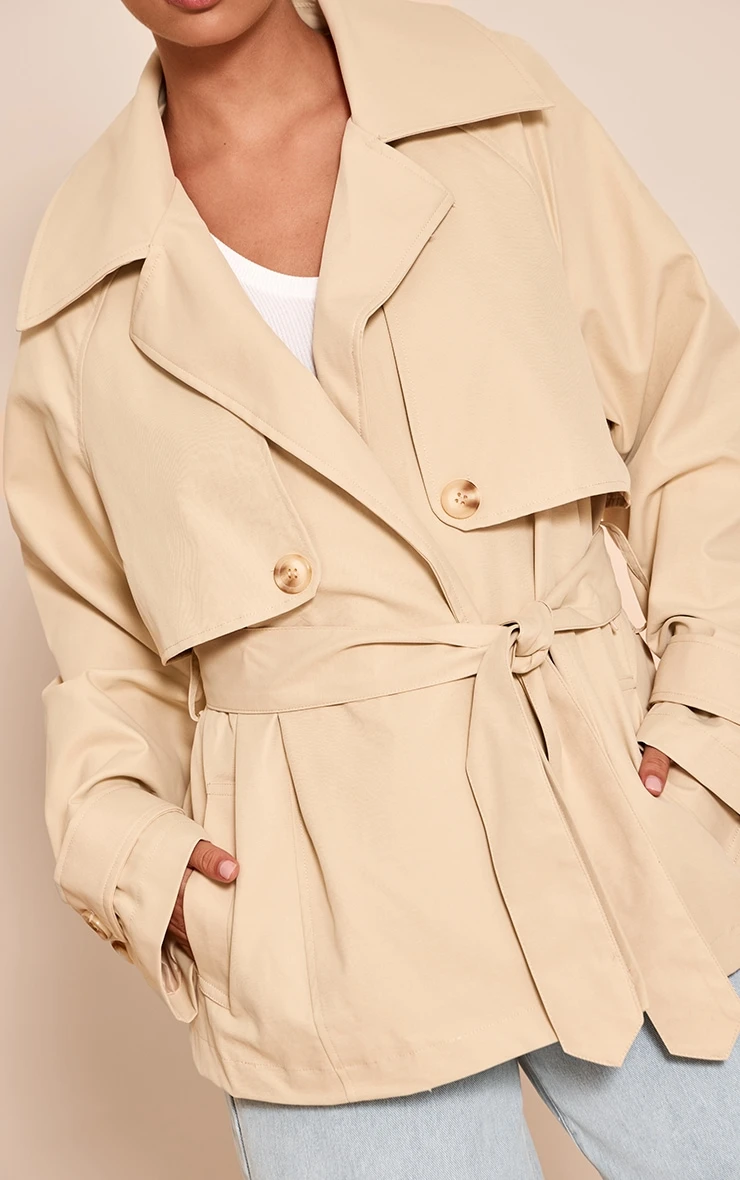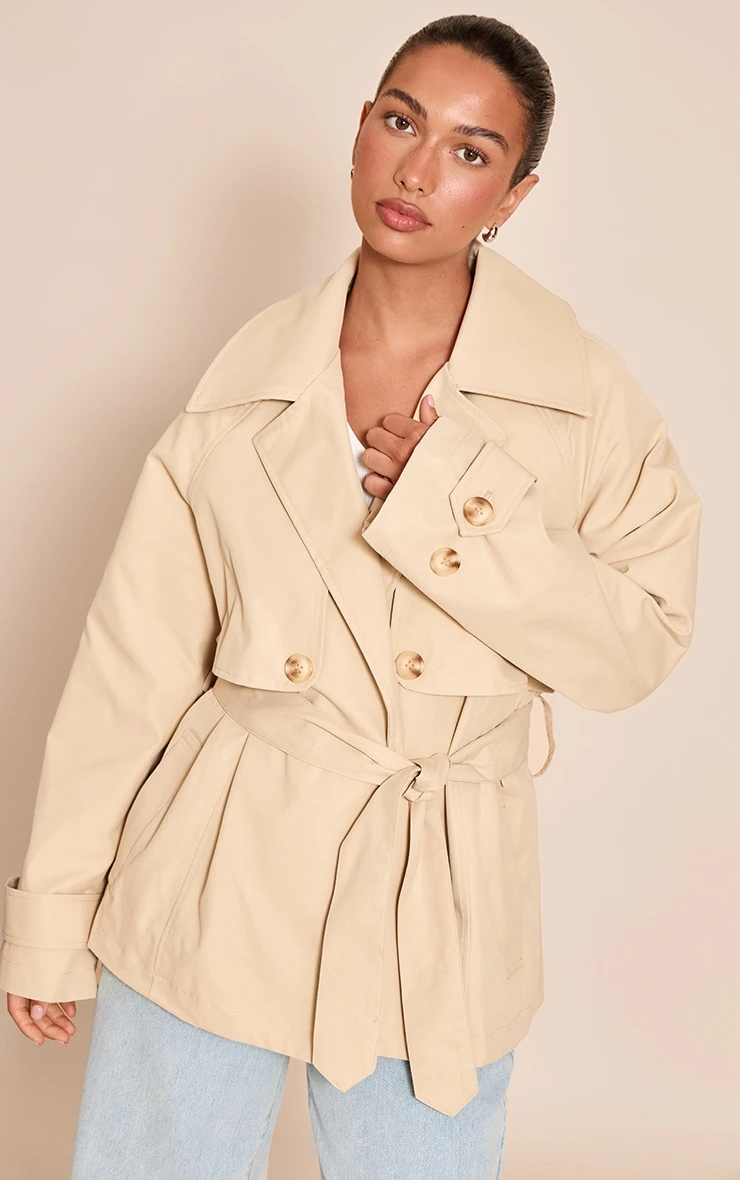 Refresh your outerwear with the stone cropped storm flap detail trench. Crafted from stone woven fabric with a cropped fit and classic storm flap design, it blends practicality with sophistication. Style with slip‑on kitten heels or a pair of ballet flats and a structured shoulder bag for a refined finish.