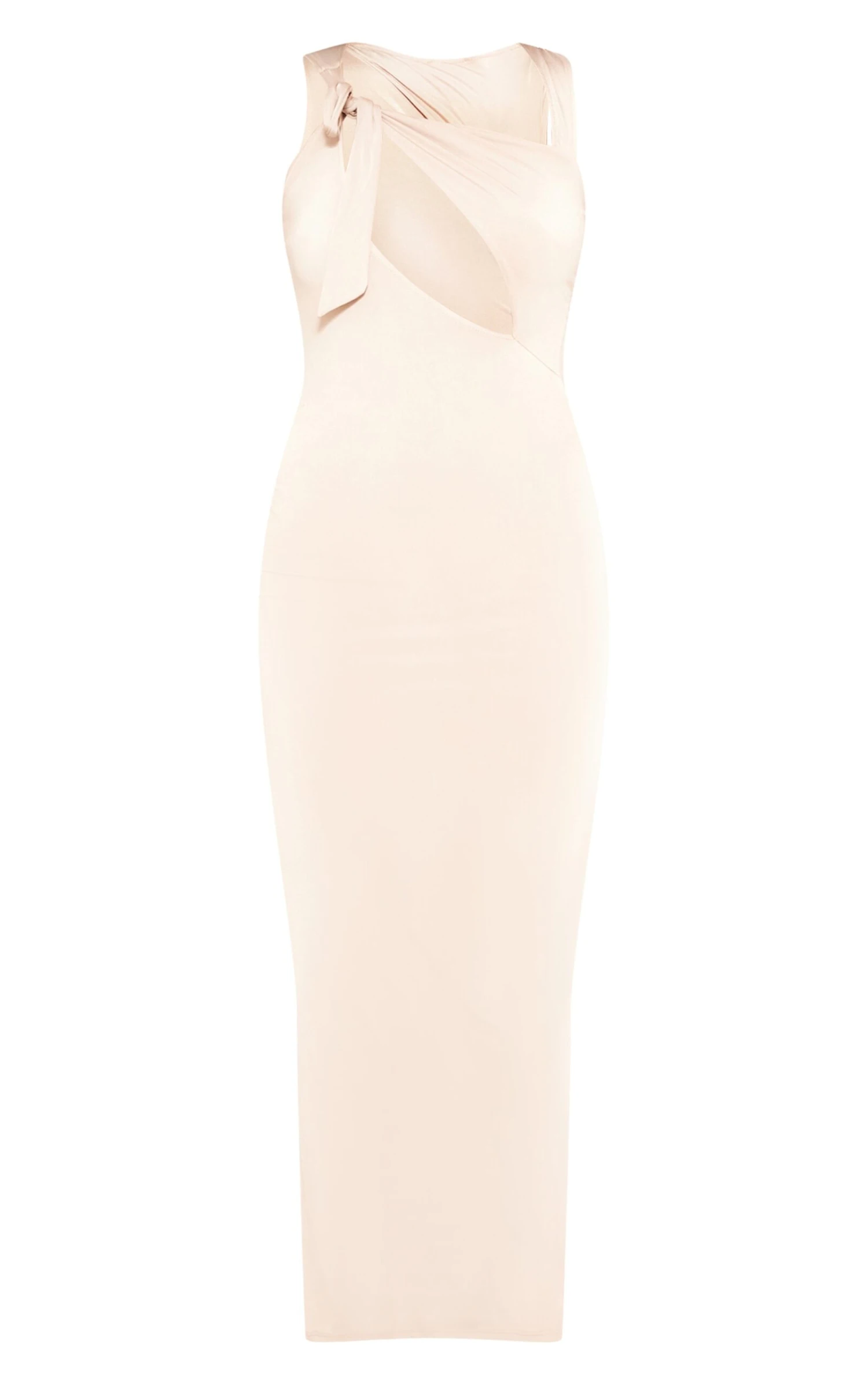 Look all kinds of chic in this stone slinky asymmetric strap knot detail midaxi dress. Brought to you in a stone slinky material with an asymmetric strap design, knot detailing and a figure-worshipping midaxi fit, how can you not fall in love. Style this slinky dress with heels and some glam accessories for a look that is sure to steal all the stares.