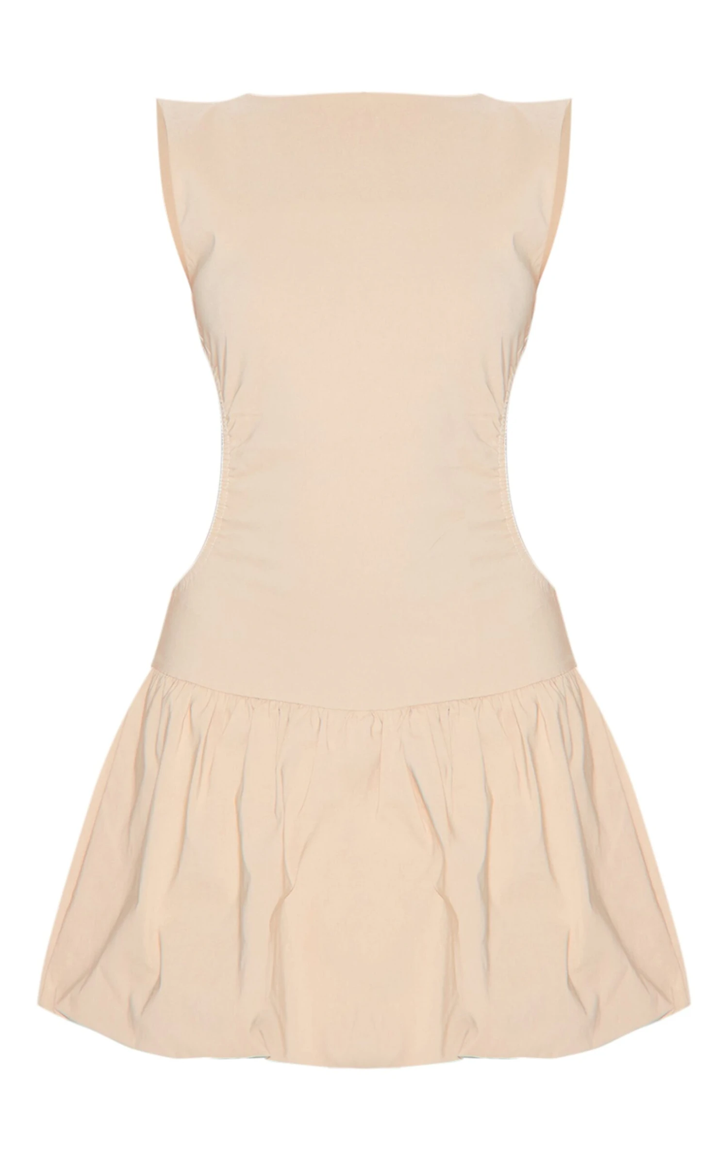 Consider this your minimalist masterclass. Crafted from a stone-hued stretch woven fabric, this shift dress offers a clean silhouette with considered details. Note the artful cut-out feature and subtly daring backless design; elements that elevate this piece beyond the ordinary. Finish the look with a sculptural gold cuff from our jewelry collection for an understated yet impactful statement.