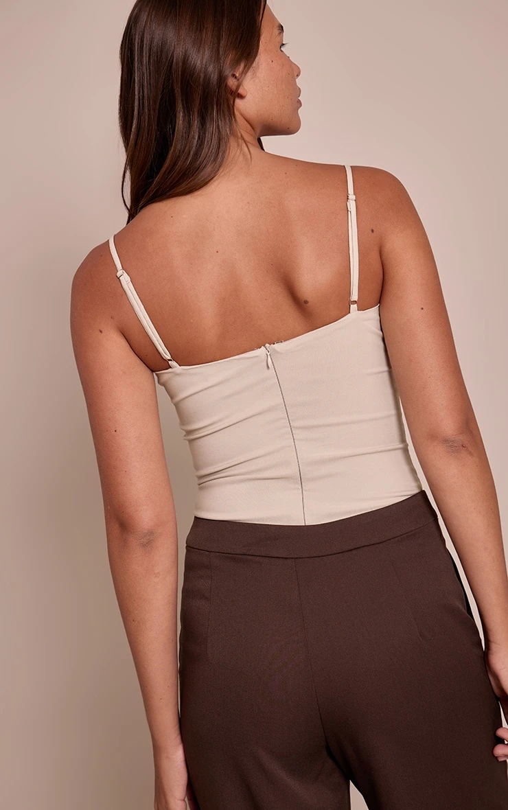 Refresh your basics with the stone woven stretch strappy bodysuit. Made from a woven stone stretch material, it offers a sleek, fitted shape with delicate straps for a minimalist finish. Style with high-waisted jeans and sandals for an effortless daytime outfit.