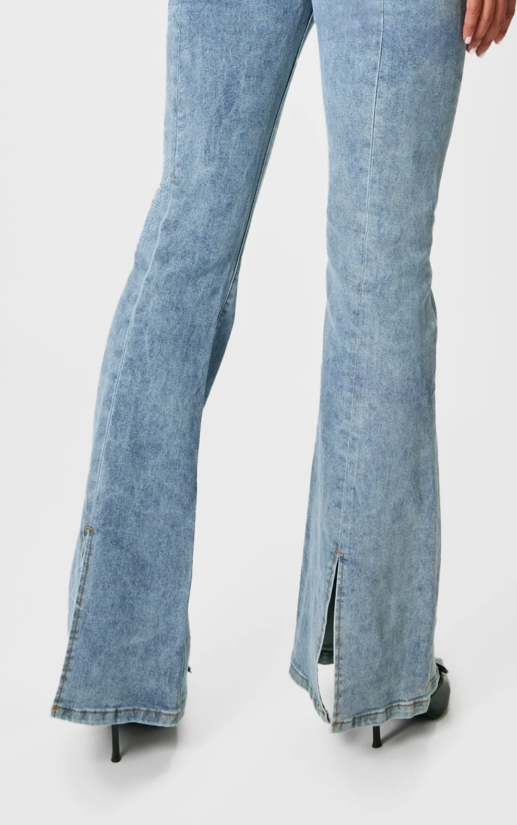 These Vintage Wash wide-leg flares offer a modern take on a classic silhouette. The vintage wash denim lends an authentic, lived-in feel, while considered seam detailing elevates the design. Note the back split hem – a subtle detail that adds movement and visual interest. Style yours with a cropped knit and chunky sneakers for a considered daytime look, or elevate them further with a tailored shirt and statement heels.