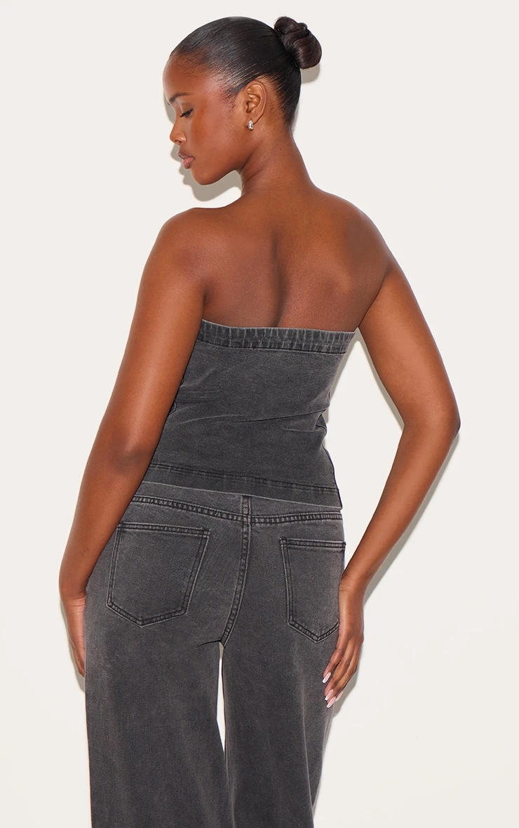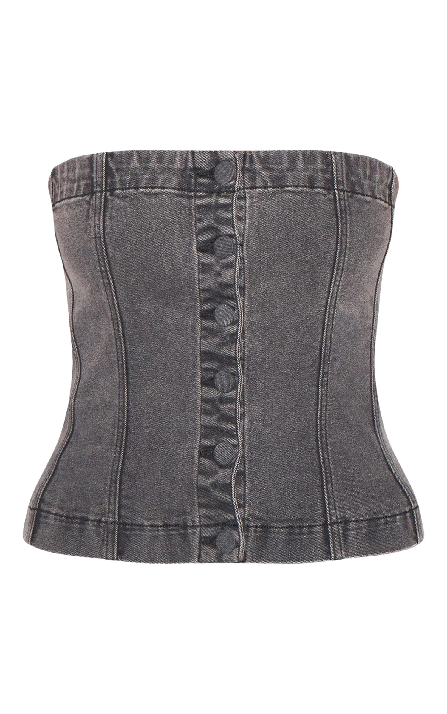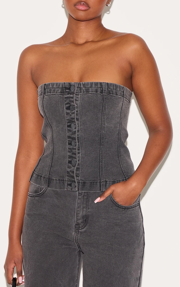 Tailored from a washed black denim, this longline corset style top features concealed value fastenings and a bardot fit.