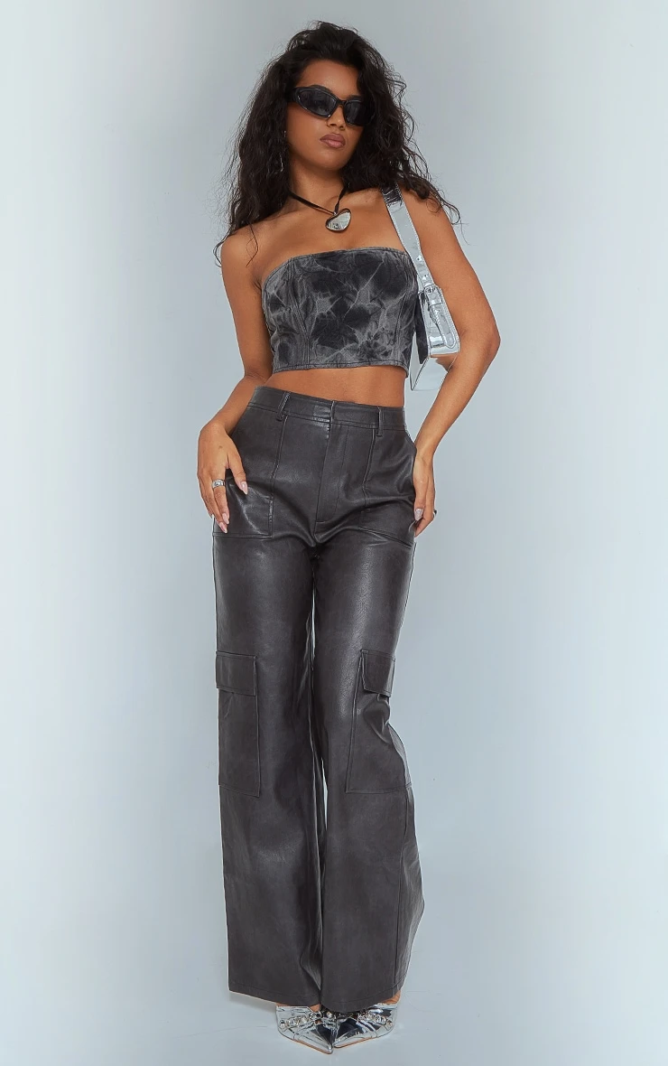 When the weekend calls for a little drama these washed black faux leather pocket wide leg cargo pants will earn you all the compliments. They include a washed black faux leather material with pockets and a wide leg design, what’s not to love? Team these cargo pants with the matching top, your highest heels and a shoulder bag for a look no one will forget.