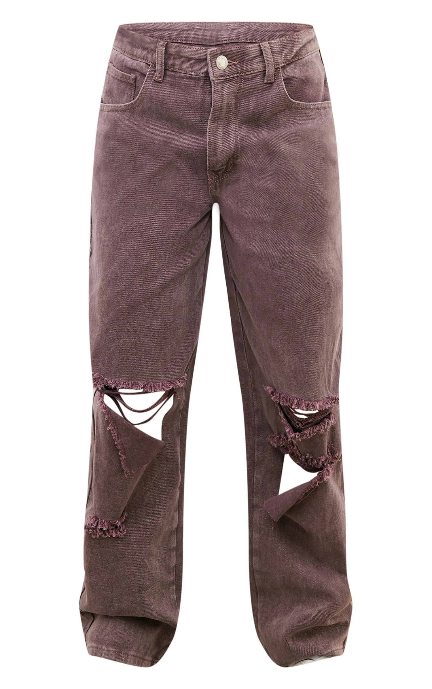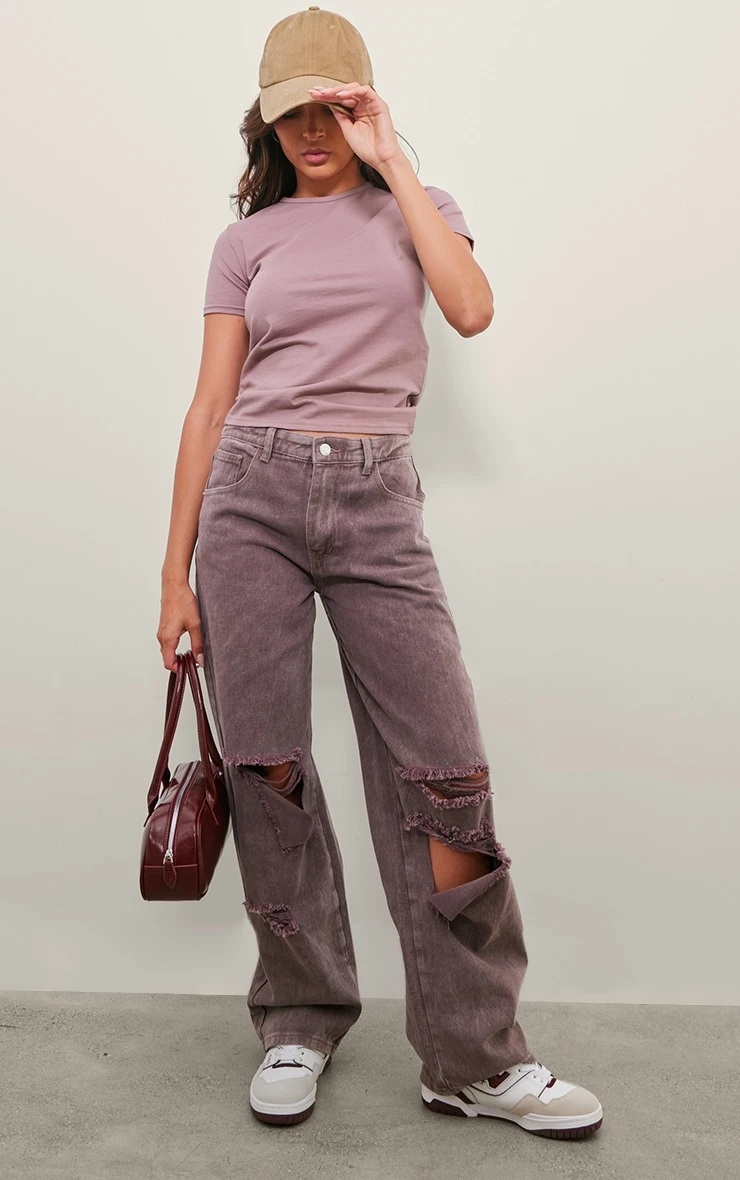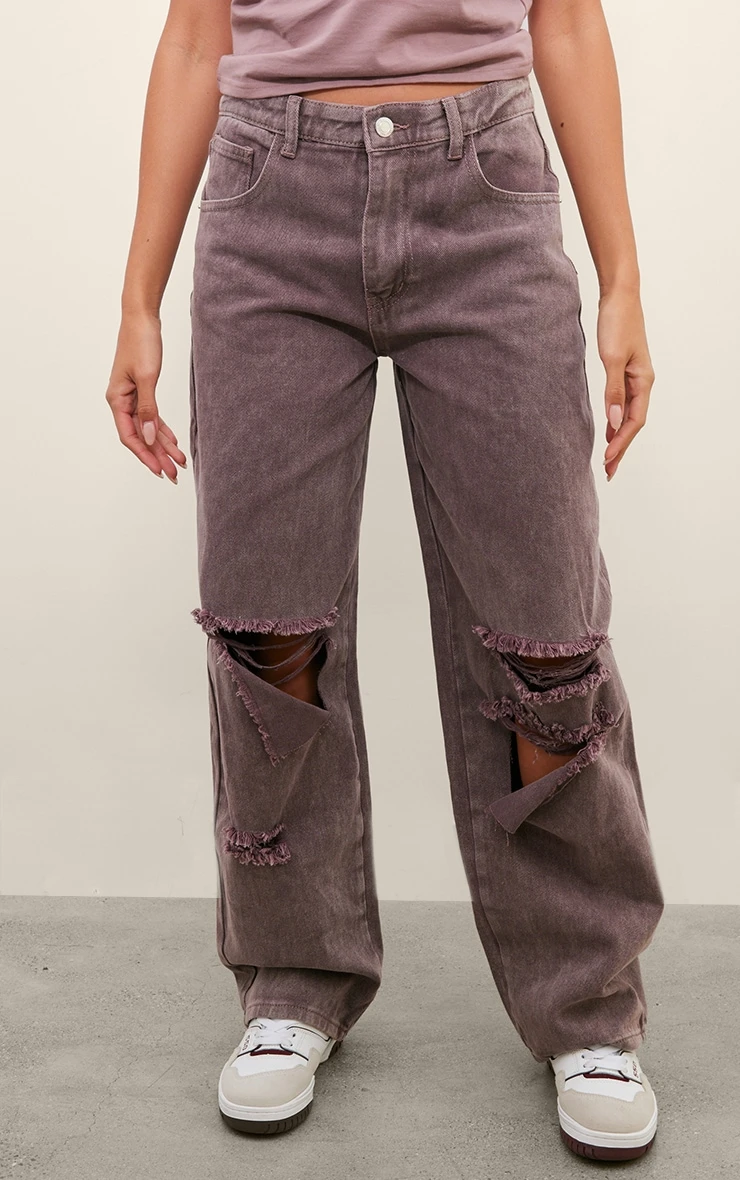 Invest in denim that speaks volumes. These washed mauve boyfriend jeans offer a masterclass in understated cool. Crafted from durable denim in a muted mauve wash, the low-rise silhouette and considered rips lend a nonchalant edge. The baggy fit provides all-day comfort and effortless style. Showcase the relaxed cut with a fitted knit top and elevate the look further with a pair of our pointed-toe heels.