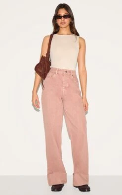 Soft washed color defines your day denim agenda. These Washed Pink Turn Up Hem Jeans shape a confident silhouette with a knowing high waist and wide leg cut, defined by a dramatic turn-up hem finish. Featuring a classic value and zip fastening, they’re crafted from 100% cotton to hold their form beautifully. Pair this key piece with a simple ribbed top or fine knit, grounding the look with sneakers or classic loafers for an effortlessly artful day edit.